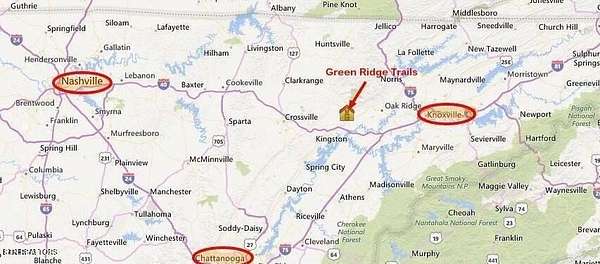 From I-40W - exit 347 (Rockwood/Harriman exit), Right on Hwy 27 about 4 miles through Harriman. Turn Left on Hwy 328 (Oakdale Hwy), Go 1/4 Mile and Green Ridge Trails Gate Is On The Right.