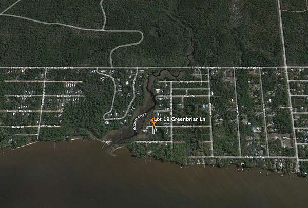 From Hwy 98 / Hwy 283, go north on Bay Dr. Turn right onto E Mitchell Ave. Turn Right on Dawson. Turn left onto Greenbriar Ln. Go past the stop sign and Lot 19 is the vacant lot on the left side of street, adjacent and to the right (if facing from the street) to the house at 225 Greenbriar Ln.
