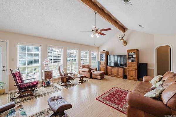 Beautiful 24-acre property in Greenbrier perfectly set up for horses or cattle! Prime acreage with cross fencing, a 40x60 horse barn, a 72x80 metal barn, two large storage buildings, and a stocked pond loaded with fish. Enjoy peaceful country living while still being close to town. The home features 3 bedrooms, 2 baths, a huge 19x21 bonus room, and an 11x14 office/craft room. Spacious 16x23 living room with tall vaulted ceiling with wood beam. Beautiful kitchen with granite countertops, breakfast bar, pull-out pantry drawers, eat-in kitchen area, and open to the gorgeous dining area. Large primary suite (12x19) with custom tiled walk-in shower with glass, dual shower heads, double granite vanities with makeup area, two walk-in closets, and linen storage. Secondary bedrooms are generously sized with large closets. Second bath also features granite counters and custom tiled walk-in shower with glass. Relax on the 19x21 covered screened porch, perfect for watching sunrises and sunsets overlooking the beautiful acreage.Large patio area! Central vac system and tons of natural light! Rare opportunity to own 24 prime acres in Greenbrier with an excellent farm setup and beautiful home!