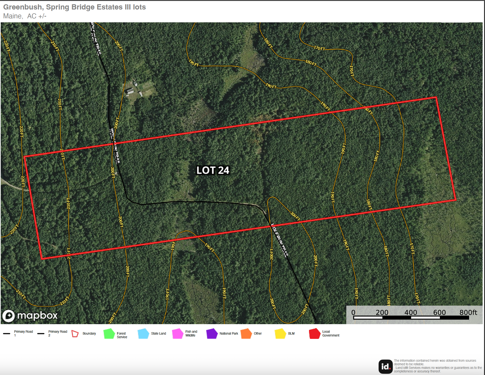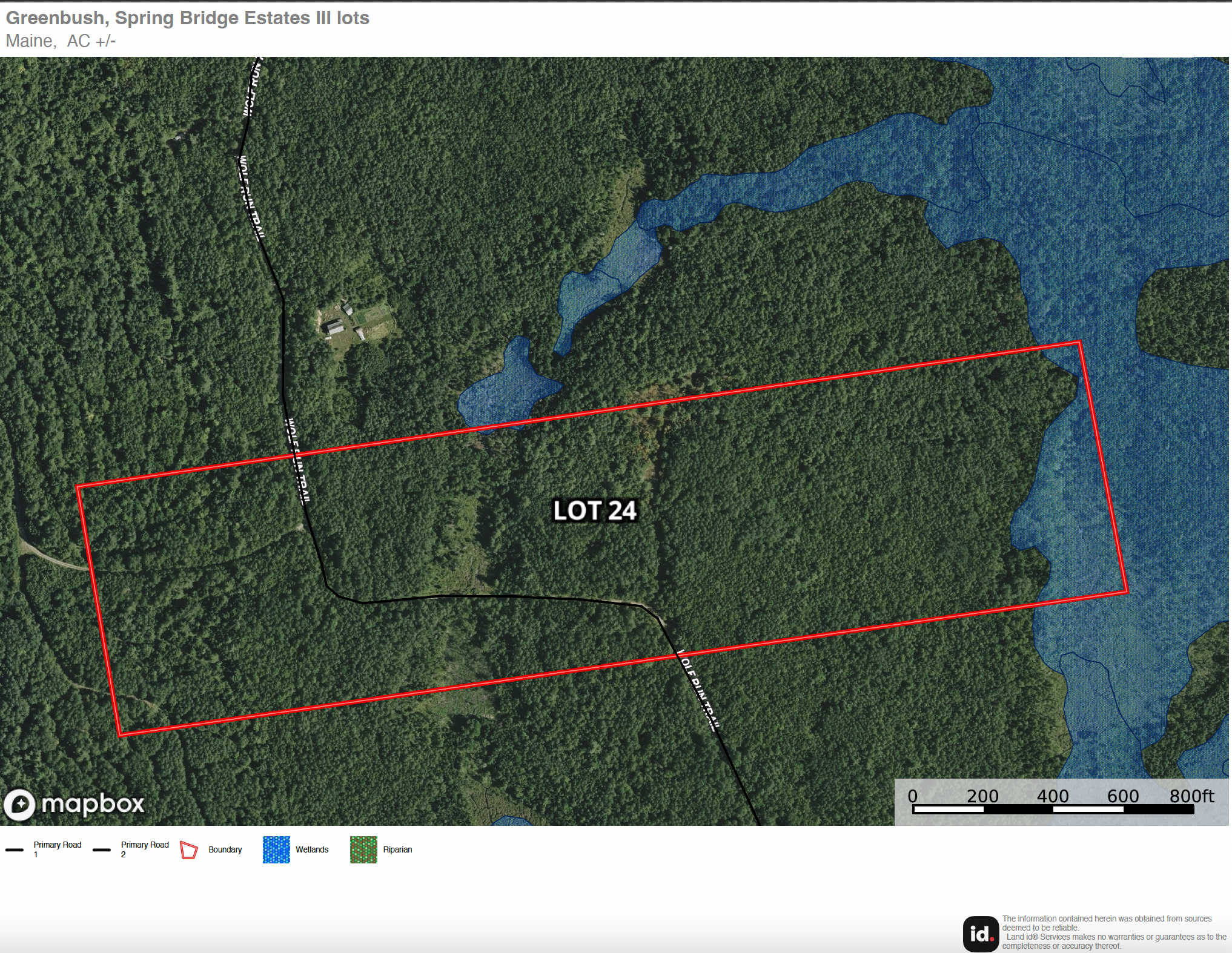 ±44 acres of Maine wilderness that won't break your bank! Located in Greenbush, this well-priced parcel is ideal for the outdoor enthusiast, off-grid dreamer, or land investor. The land has been growing strong since it was last logged in 1989 and is enrolled in Maine Tree Growth (predominantly hardwood and mixed wood), keeping your taxes low. An established clearing is ready for a campsite or off-grid homesite, and deer and wildlife sign are abundant on the property. The surveyed lot (corner pins in place) rolls gently from 170' near the back wetland up to 210' near the road. Access is via a shared gravel road with no HOA -- neighbors informally split maintenance costs, and a year-round resident currently handles plowing. Want even more acreage? Combine this lot with the adjoining parcel (003-026-036) for 88 acres total with Otter Trail frontage -- available together for $99,900. Directions: From Route 2, take Greenfield Road, continue for 5.7 miles. Take left onto Spring Bridge Rd for 2.4 miles. Take left onto Bear Run Rd for a mile. Take left onto Wolf Run Trail. Property begins in approx 1.1 mile just past a home on the left. Boundary line is flagged.