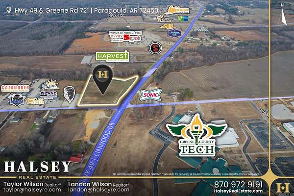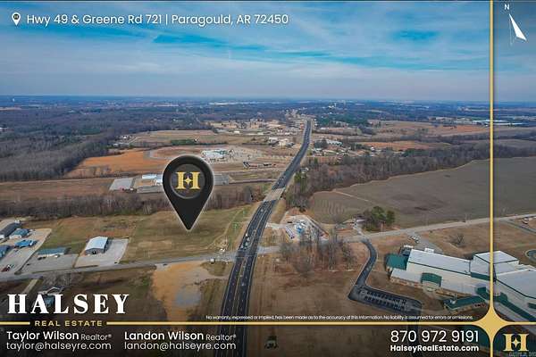 This property, located at the corner of Greene Rd 721 and Hwy 49N, offers a prime location for commercial development with opportunities to subdivide. Situated across the intersection from Greene County Tech High School and directly connected to Hwy 49N, it boasts excellent accessibility and visibility. Its strategic positioning, visible from the neighboring US 412 By-Pass, enhances its commercial viability. Furthermore, this property is located at the south entrance of a thriving thoroughfare featuring a diverse array of amenities, including retail outlets, medical facilities, hospitality establishments, and restaurants. This bustling environment promises an ideal, steady flow of traffic. This property presents a compelling opportunity for investors and developers looking to capitalize on a strategic position within a flourishing commercial hub.