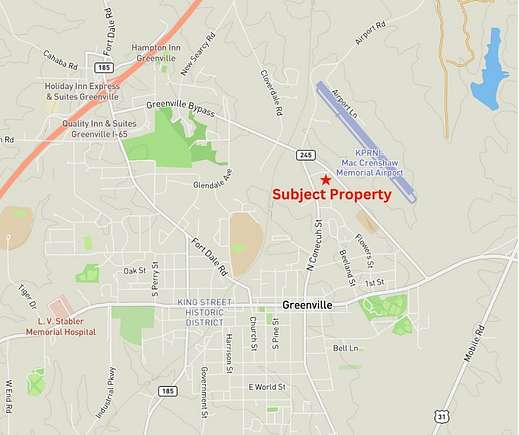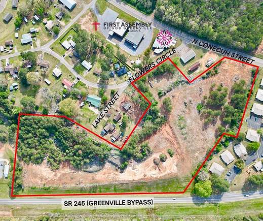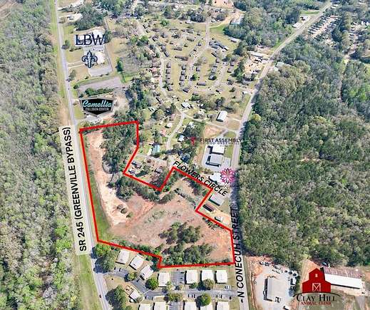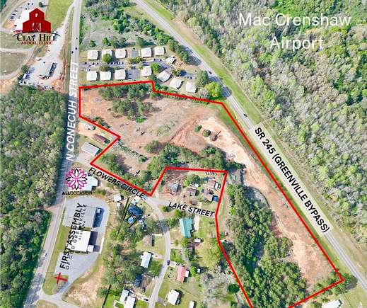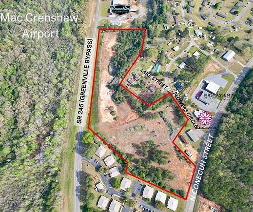 Est $2,324/moExceptional 13 acre C-3 commercial property in Greenville, AL with 911' of frontage on Hwy 245 Bypass plus access from Conecuh St & Flowers Cir. Ideal for retail, medical, office, gas, hotel & more. High-traffic area near I-65, schools, and downtown. A prime development opportunity in a growing market.
