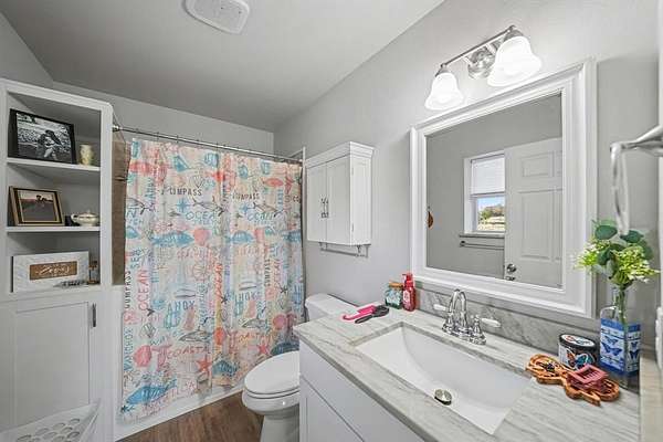 Situated on approximately 3 acres in Greenville, this rare property offers privacy, flexibility, and long-term potential with two separate homes on one property. The main residence features 4 bedrooms and 3 full bathrooms, including a fully self contained attached 1 bed, 1 bath living space complete with its own private entrance, full kitchen, and living room. Ideal for multigenerational living, extended guests, private office space, or additional income potential while maintaining separation and privacy. The primary home offers spacious living areas, abundant natural light, and a functional layout designed for everyday living and entertaining.