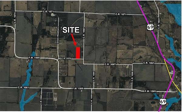 Est $2,684/moAg-exempt acreage located just outside the city limits of Greenville, Texas. This property is situated entirely outside of the floodplain and offers excellent road frontage, providing both accessibility and flexibility for a variety of uses. Conveniently positioned near U.S. Highway 69, it allows for easy access while maintaining a quiet, rural setting.