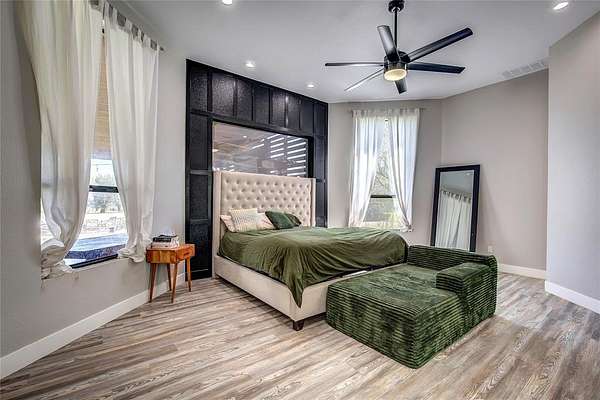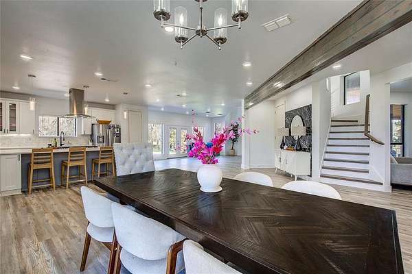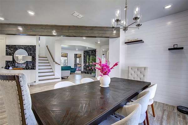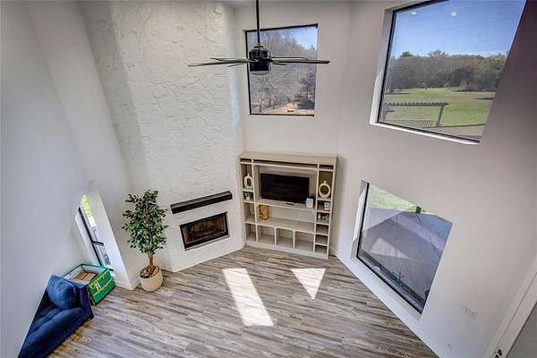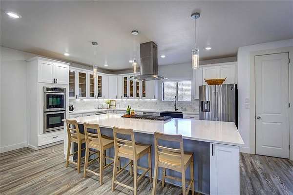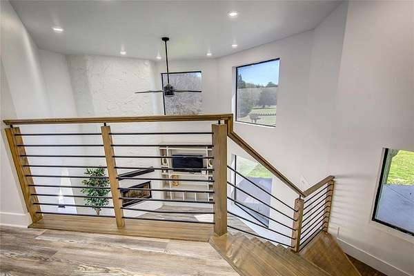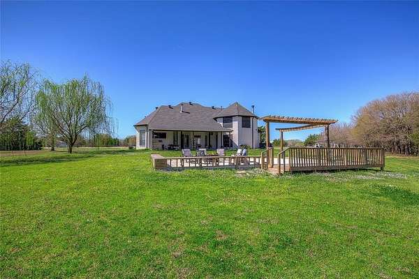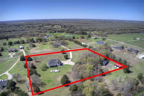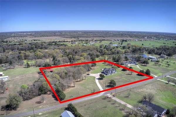 Nestled on 4.4 scenic acres, outside the city limits with no restrictions, this beautifully renovated estate offers the perfect blend of space, privacy, and modern comfort in a charming neighborhood setting. Completely updated in 2022, the home features 4,432 square feet of thoughtfully designed living space, highlighted by an open-concept floor plan and abundant natural light throughout Designed for both everyday living and entertaining, the home offers two spacious living areas, each anchored by its own cozy fireplace. The kitchen, dining, and living spaces flow seamlessly together, creating a warm and inviting atmosphere. The well-appointed kitchen features a gas cooktop, electric double ovens, and generous prep and gathering space ideal for hosting family and guests.This expansive home includes 5 bedrooms and 3.5 bathrooms, with a layout designed for flexibility and comfort. The primary suite is conveniently located on the main floor, along with an additional bedroom that makes a perfect home office or guest room, as well as a half bath.The second level offers three additional bedrooms, two full bathrooms, and a dedicated media room—perfect for movie nights or game days. A third-floor bonus room provides even more versatile space that could serve as a game room, studio, or private retreat. Outside you'll find a covered and an uncovered patio that are both great for entertaining. Just beyond the trees, adding even more value to the property, you’ll find a separate 1,100-square-foot bunkhouse with six bedrooms, currently used for employee housing, along with a 1,600-square-foot workshop ideal for projects, equipment storage, or hobby space.With generous acreage, extensive living space, and versatile outbuildings, this exceptional property offers a rare opportunity to enjoy country living with modern convenience.