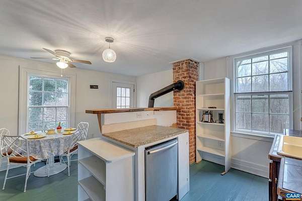 Very charming home built mid to late 1800's, retaining the original wavy glass windows, heart pine floors and clapboard siding. Stunning views of the Blue Ridge Mountains in WAlbe, the sunrises and sunsets are spectacular. The 9.44 acres has Stony Run at the rear and a spring that historically provided water to numerous homes in the area via a ram pump and stored water in a concrete cistern that is still on the property. There is an old partially log structure in disrepair and we ask that no one goes into the structure because of it's condition. It would be a great restoration project. The adjoining homes in the area are of very high quality. There is a possibility that this land could be divided & two more building sites developed if all the county approvals are met. The metal roof was replaced in 2013and the forced air furnace around 2013. An addition in 2004 added a large mud room, full bath, laundry area, side deck. The entire interior has been painted and plaster repaired. None of the fireplaces are in working order. The chimney tops were re-pointed in 2013prior to the new roof going on. The home, all appliances & outside structures are sold in ""as is"" condition. The home needs continued restoration but worth it. owner/agent