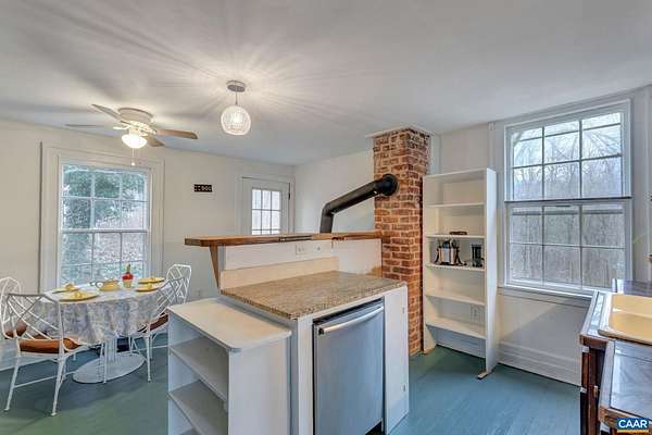 ""Very charming home built mid to late 1800's, retaining the original wavy glass windows, heart pine floors and clapboard siding. Stunning views of the Blue Ridge Mountains in WAlbe, the sunrises and sunsets are spectacular. The 9.44 acres has Stony Run at the rear and a spring that historically provided water to numerous homes in the area via a ram pump and stored water in a concrete cistern that is still on the property. There is an old partially log structure in disrepair and we ask that no one goes into the structure because of it's condition. It would be a great restoration project. The adjoining homes in the area are of exceptional quality. There is a possibility that this land could be divided and two more building sites developed if all the county approvals are met. The metal roof was replaced in 2013 and the forced air furnace around 2013. An addition in 2004 added a large mud room, full bath, laundry area, side deck. The entire interior has been painted and plaster repaired. None of the fireplaces are in working order. The chimney tops were re-pointed in 2013 prior to the new roof going on. The home, all appliances & outside structures are sold in """"as is"""" condition. The home needs continued restoration but worth it.""