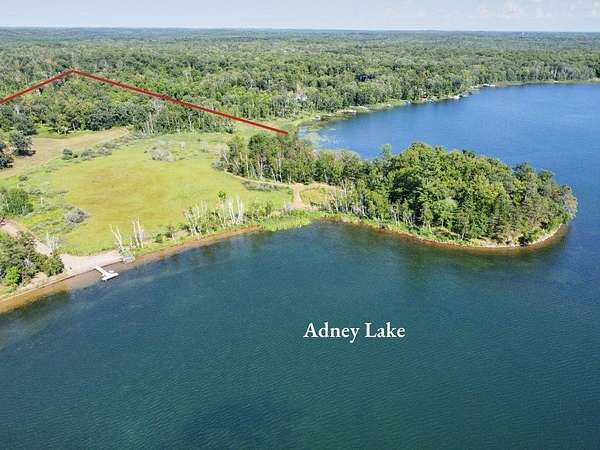 Experience the rare opportunity to own the sought-after Adney Lake. This expansive 38.4-acre parcel features approximately 2,200 feet of prime South and West-facing sandy shoreline on a fully recreational 310-acre lake just north of Crosby. Surrounded by established development, this is the last remaining large tract of undeveloped shoreline on Adney Lake. The land is gently rolling with low elevation to the water and offers a mix of open space and medium tree cover. It boasts an undeveloped peninsula that is truly unique, numerous trails throughout, beautiful fields that are cut each year, and thousands of acres of State land that is literally right out your door. Whether you envision a private lakefront estate, a multi-generational family retreat, or future subdivision potential, the possibilities are truly wide open. A small cabin remains on the property with a drilled well, electric, and propane that could serve as a temporary base while you build. Enjoy excellent fishing, boating, and quiet evenings on a premier lake in the heart of the Brainerd Lakes area.