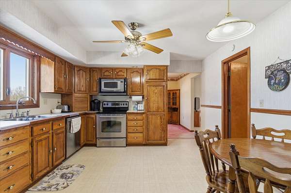 - Ceiling Fan(s), Eat-In Kitchen, Garage Door Opener, LP Tank Rented, Pantry