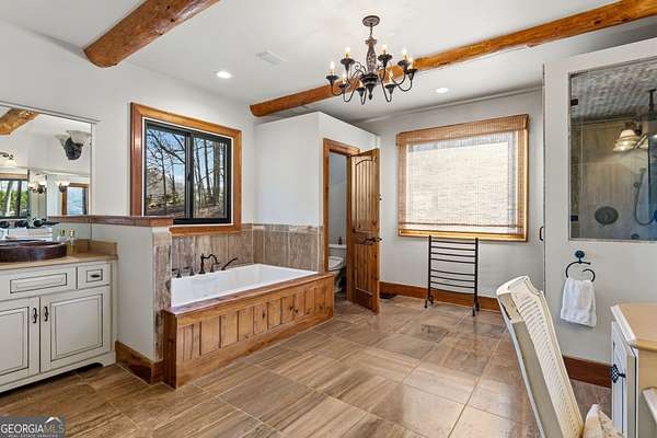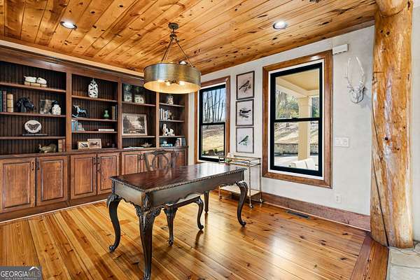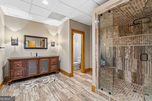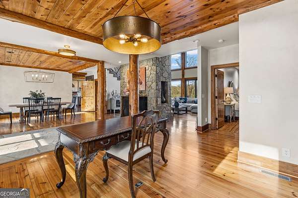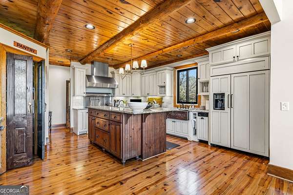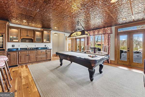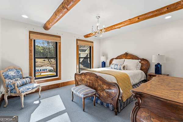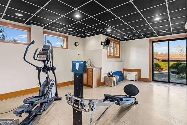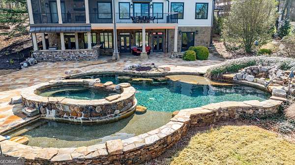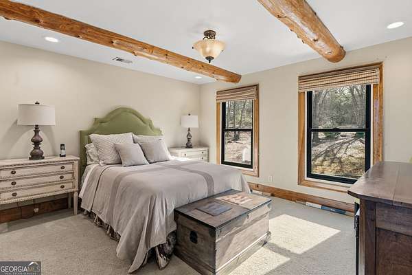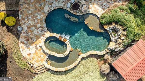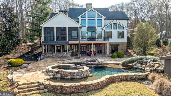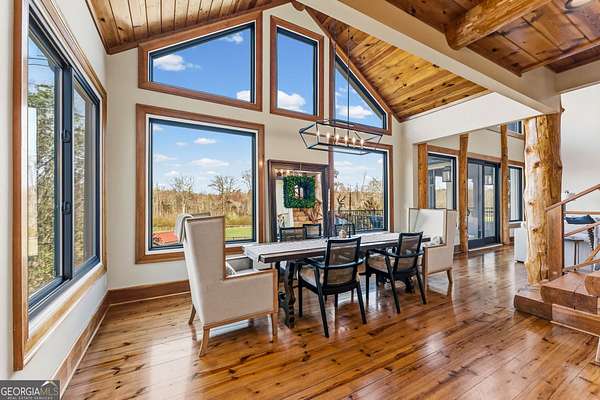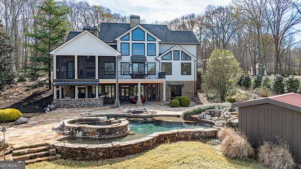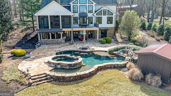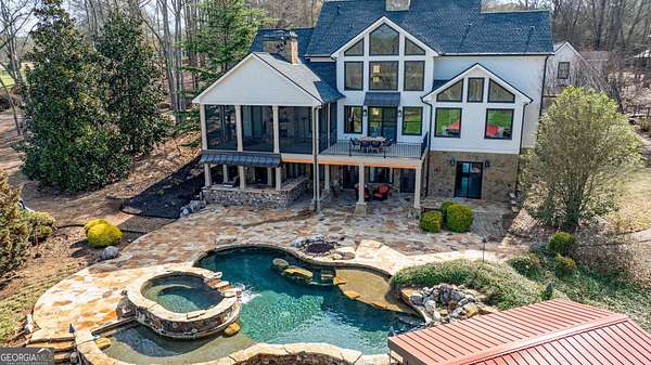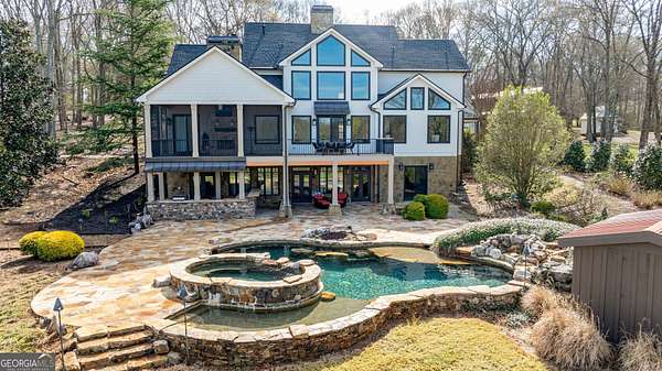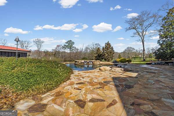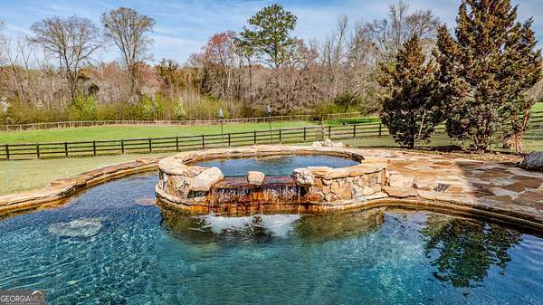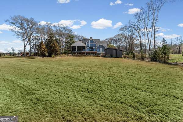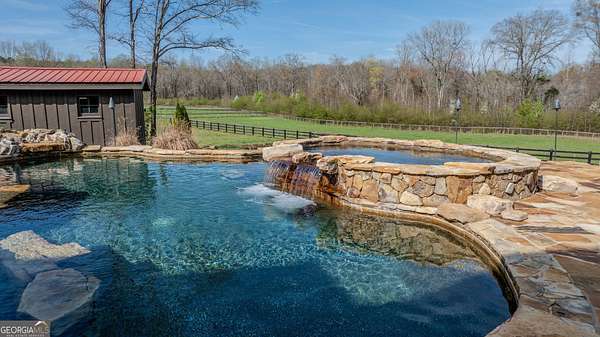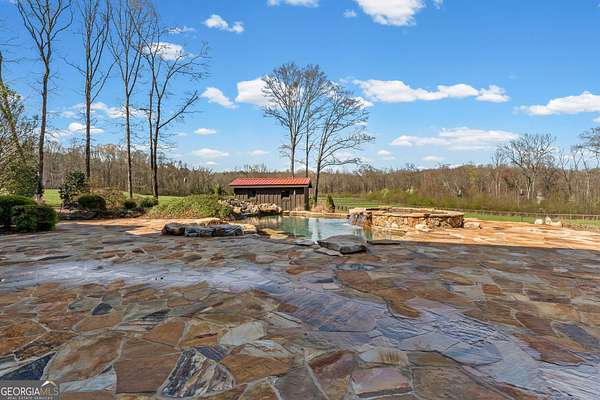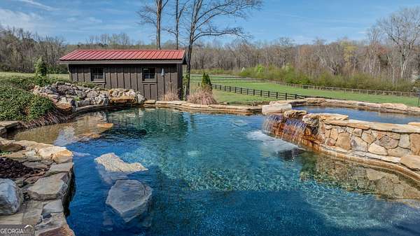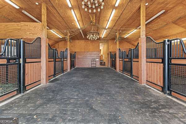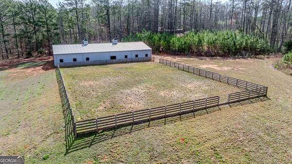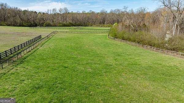 EQUESTRIAN ESTATE ON 48 ACRES WITH STUNNING TWO STORY STUCCO AND STONE HOME! Home has log beams, full finished basement, 6 bedrooms, 6 A1/2 baths, Grand Greatroom /Family Room with 30' vaulted ceiling, floor to ceiling stone fireplace, Dining Room, Office, heart pine floors, granite and stainless Chef's Kitchen has 9' center island, custom cabinetry, every imaginable upgrade, 3 basin copper sink & walk-in pantry. Laundry room with sink. Two Owner's suites - one with stone fireplace. Salt-water Gunite pool with pool spa and waterfall. Veranda lounge with outdoor kitchen, fireplace and fantastic views. Triple garage with apartment above. Basement has a bar imported from Ireland, theater room, wine cellar, fitness center, bedroom & craft room. 10' x 12' Pool house, potting cottage, 3 barns total, huge wooden barn with 11 stalls, kitchen, 4 roll-up doors. 2nd Metal barn with 12 stalls & 2 roll-up doors. Riding ring. Hunter's cabin. 3rd Barn for hay and equipment. Gated entrance giving great privacy and security. Horse lovers paradise with 7 paddocks, gorgeous pasture and winding driveway. Wooded area with its own entrance at back of property. Ideal for commercial horse farm, Special Events Center, B & B, Wedding venue or fine estate home. Easy I-75 access. All furnishings that are currently in the home remain as part of the sale. The property is sold subject to tax saving CUVA which must be assumed by Buyer. CUVA expires at the end of 2028. If breached by Buyer, then, Buyer is responsible for any back taxes and penalties and railings. Recent upgrades include new roof, 2 new Trane HVAC units, Trek deck, screen porch, stains, stucco and stone exterior. See complete list of recent improvements in associated documents in GA MLS.