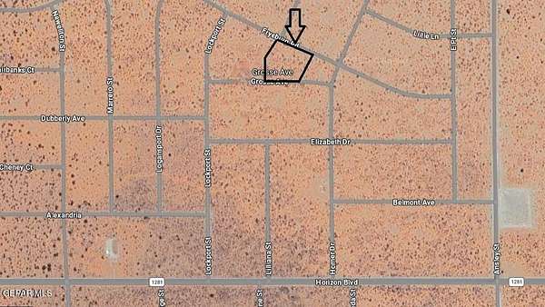 Est $244/moGreat investment opportunity! 2.23 Acres!! Surveyed. Just a couple of streets away from Horizon Boulevard, minutes away from shopping and food. Lot is accessible from two streets (Gross Ave. & Fryeburg Rd). Coordinates: 31.68824, -106.05231. Keep driving on Horizon Boulevard, Pass Asencion, pass Shadow Mt Lake/Indian Trail, make a left on Lockport St. then right on Grosse Ave.