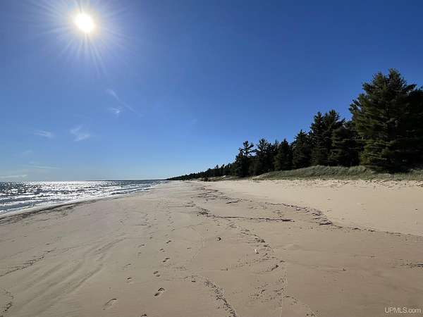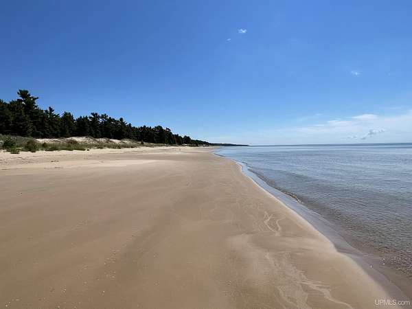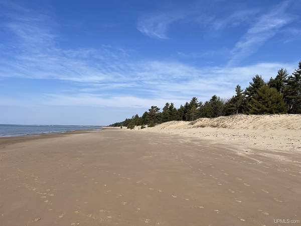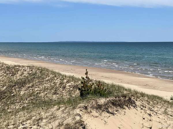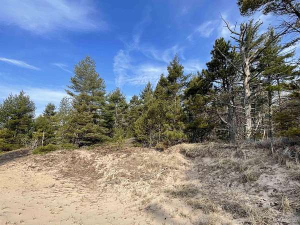 On the Top of Lake Michigan you will find one of finest waterfront parcels anywhere. The location provides a gorgeous southerly view with the occasional freighter passing by. There is so much to enjoy with the incredible qualities this property has to offer, but our favorite is the deep and plentiful sugar sand! The beach goes for miles in either direction and offers some of the best recreation you will find anywhere. This parcel has 403' of water frontage, is approximately 43 acres and has a good route to the quality building site which is elevated and will offer excellent views over the front dune area. The beach is wide and the sand continues in the lake to well beyond where anyone would venture by swimming or paddling. The predominant trees are red oak, red pine and white pine and the forest is mature and majestic and the upper limbs are often visited by the many eagles in the area. The access is by a private gated road that runs along the shoreline for close to two miles and there is no outlet making this property so very quiet, secluded and secure. Building your vacation or forever beach home here could be the dream you have been looking for!