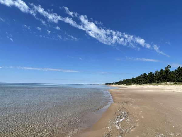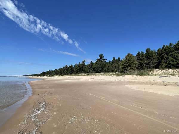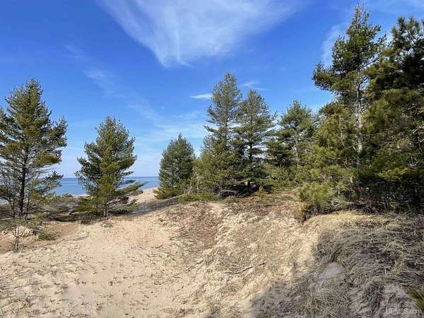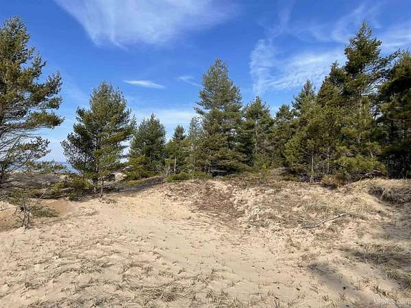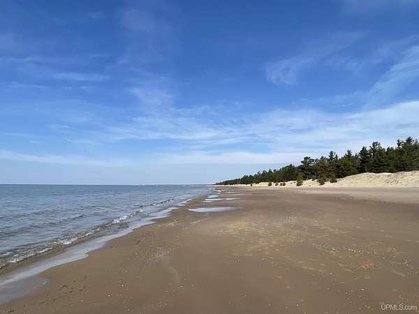 On the Top of Lake Michigan you will find one of finest waterfront parcels anywhere. The location provides a gorgeous southerly view with the occasional freighter passing by. There is so much to enjoy with the incredible qualities this property has to offer, including privacy, mature forest, rolling dunes, and a wide sugar sand beach! The beach goes for miles in either direction and offers some of the best recreation you will find anywhere. This parcel has 437' of water frontage, is 4.47 acres and has a good route to the quality building site which is elevated and will offer excellent views over the front dune area. The beach will offer all of the recreation you can imagine to make this property very entertaining. The predominant trees are red oak, red pine and white pine and are often visited by the many eagles in the area. The access is by a private gated road that runs along the shoreline for close to two miles and there is no outlet making this property very quiet, secluded and secure. Building your vacation or forever beach home here could be the dream you have been looking for!