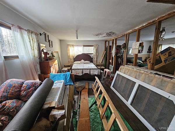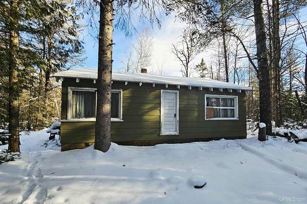 Secluded, off-grid camp located off Iron Pin Trail in Gwinn with scenic views and Escanaba River frontage, situated on approximately half an acre. This peaceful retreat offers the perfect setting to enjoy everything the Upper Peninsula has to offer; hunting, fishing, kayaking, hiking and quiet weekends surrounded by nature. Only a few miles from public access to large inland lakes, thousands of acres of state land nearby for hunting and about 25 miles from Lake Superior. The camp features a wood cook stove and wood heat. There is electrical wiring already started in preparation for a generator connection. While the interior needs finishing this property provides an excellent opportunity to customize your own off-grid getaway and truly live with the land. Secluded and private yet conveniently located with quick and easy access to town for supplies and necessities. A great opportunity for those seeking a simple, rural escape with river frontage and beautiful natural surroundings.