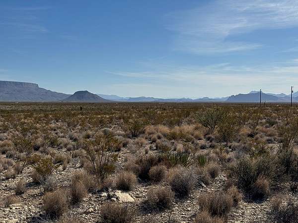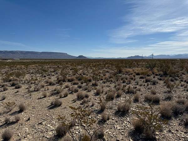 Est $352/moPerfect highway frontage, excellent views, easy access from HWY 118. Financeable, offers level ground to build your desert dream home on. Perfect location for a business or home, or glamping, it's minutes away from the Little Burro Store, north of Big Bend National Park, access to Terlingua Ranch pool and Restaurant. Call Kerri for a showing