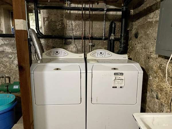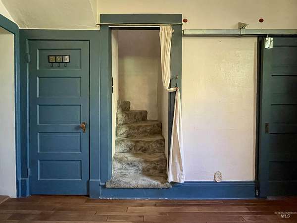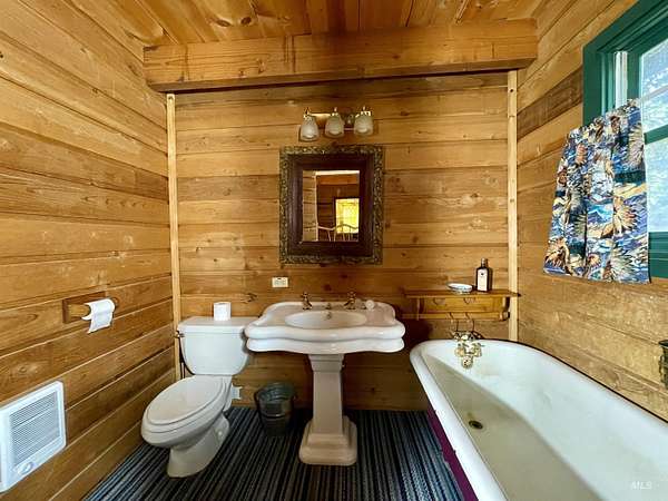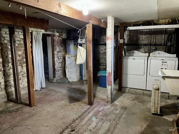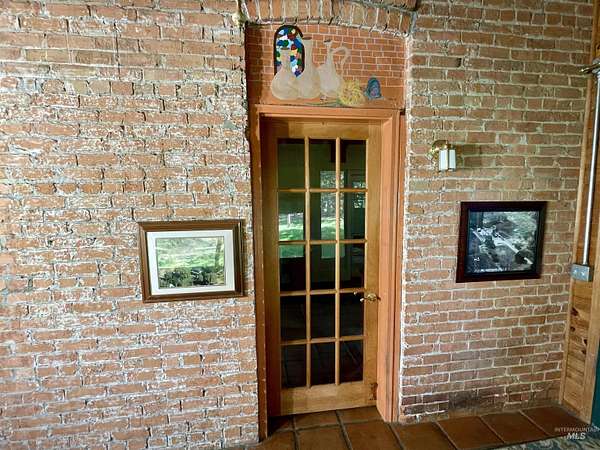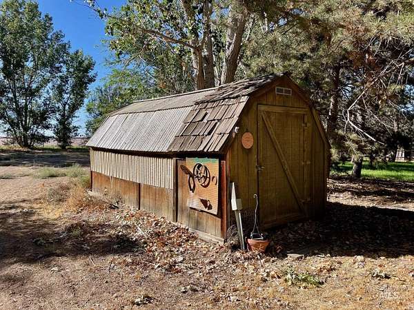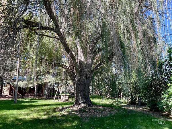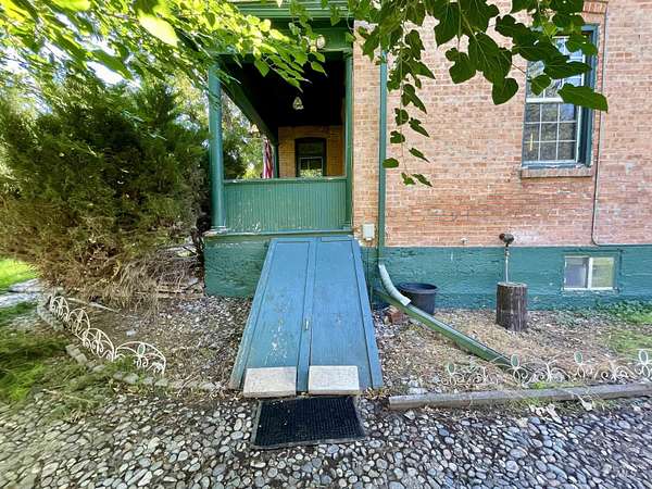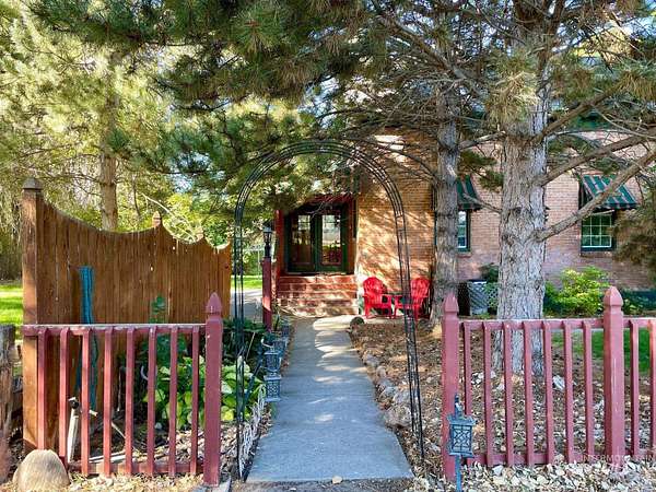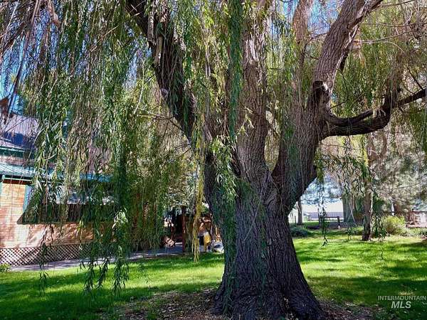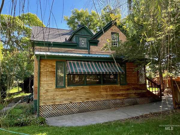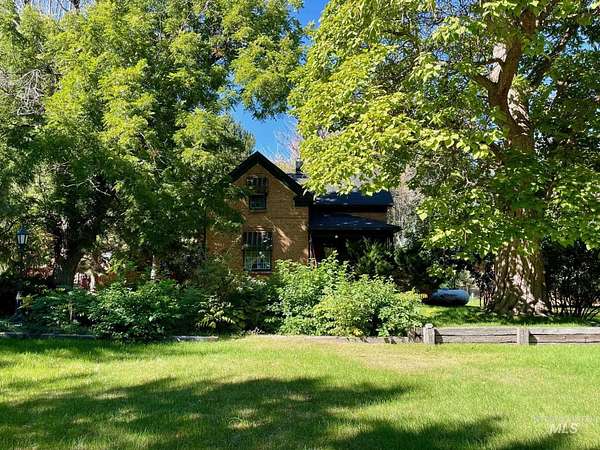 Discover this charming 1904 brick two-story home, 1596 sq.ft., nestled in a park like setting surrounded by a variety of trees on 2.01 acres, featuring 2 bedrooms and a flex room upstairs, living room, family room, kitchen, sunroom, full bath on the main floor, and a large below grade cellar for storage/workshop. This historic gem boasts beautiful tiles in the kitchen, complemented by oak hardwood floors and a cozy propane fireplace. The property includes a 400 sq. ft. "Bunkhouse" ADU with bedroom, bathroom w/clawfoot tub, and a living room with a wood burning stove, perfect for guests or Airbnb income. Enjoy open space and privacy, benefit from delicious spring water and the advantage of owning water rights. With no HOA, wonderful neighbors, and a location just 5 minutes from downtown Hagerman, you can enjoy the outdoor opportunities of the Hagerman Valley.