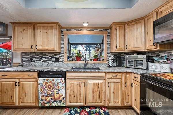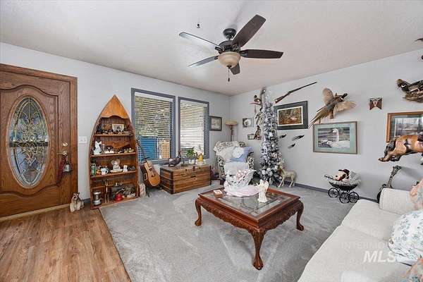 Welcome to 215 Willow Lane with an extra buildable lot!! Here the water runs year around in the heart of the Hagerman Valley. This charming country home has an abundance of water shares, areas for animals, and the opportunity to own 2 lots in Willow Brook Subdivision. Over 2 acres of property and a single level home with 3 bedrooms, 2 living spaces, 2 dining areas, and 4 out buildings offering power, heating, and cooling, all topped off with the brilliance of full RV hookups and parking. The kitchen has been crowned with custom wood cabinetry and beautiful granite counters, opening up to the high ceiling great room including a tiled wood burning fireplace. High quality LVP and carpet are throughout the home, and the bathrooms have tasteful updates including marble tile floors. This park like setting, with its decks and gardens, mature trees and spacious lawn, showcases a restful and recreational dream. All just a minutes drive from downtown Hagerman and hot springs, fishing and hunting, boating and bike trails, and I-84.