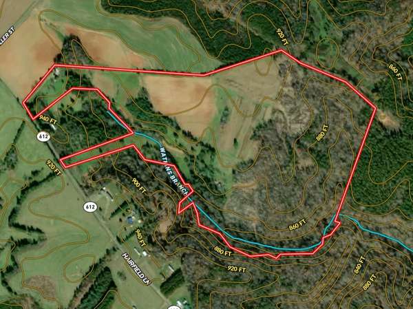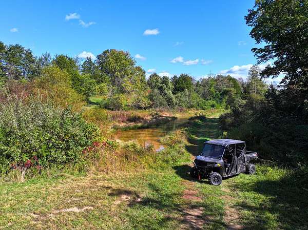 Perfect for recreational use, hunting, farming, or building your dream country home, this property's diverse terrain features approximately 25 acres of open pasture paired with gently rolling fields and a healthy mix of mature hardwoods, including oak, poplar, and hickory. The land borders Watkins Branch Creek, offering a reliable water source for livestock and wildlife, while the open fields could easily be converted into equestrian space, hay production, or destination food plots to hold whitetail deer and turkey.