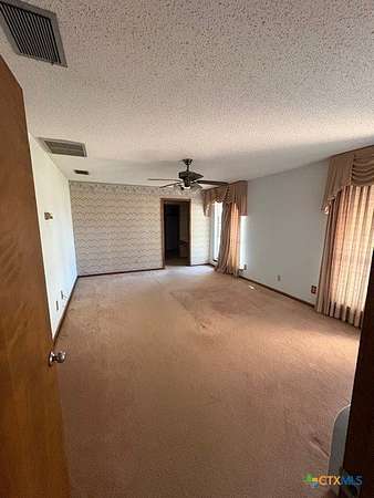 3 bed, 3 bath brick home on 41.719 acres. Located just outside of Hallettsville on FM 318. The home is a late '70s build that has a modern style for it's time of construction. The kitchen is open to a large vaulted family room that has a wood burning fireplace. Next to the family room is a game room with wet bar and bathroom. Also next to the family room is an atrium. The dining area is separate from the kitchen, yet still open to the family room. In the primary bedroom there is a walk-in closet, carpet flooring, walk-in shower, and private vanity. Bedroom two and three are spacious with closets and carpet flooring. Ceiling fans throughout the house. The utility room has a wash sink and built in ironing board. Outside there is a set of cattle pens/ chutes, and a 3000 sq. ft. metal workshop with concrete floors, electricty, and a living/ kitchenette area. The property perimeter fencing is barbed wire and cedar post. From the back porch of the home you can see the fish pond that sits in the pasture directly behind the home.