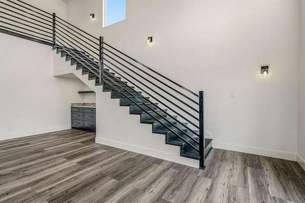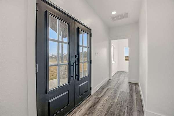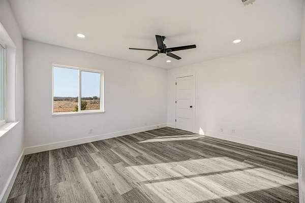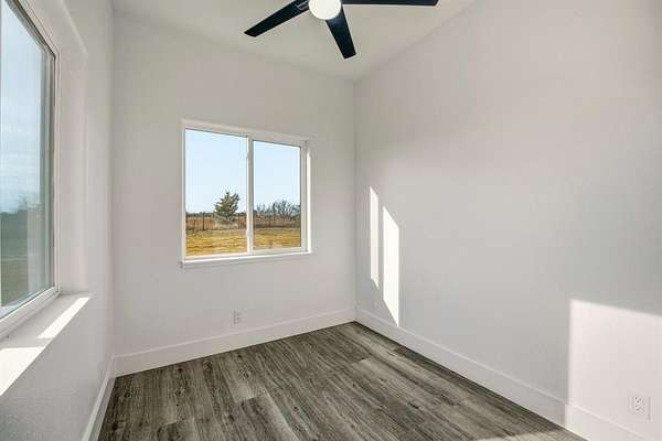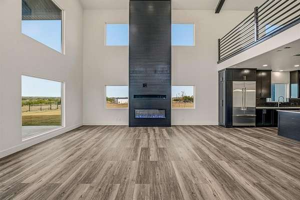 Tucked away on 12 private acres just outside of town, this 2023 custom-built modern home offers the perfect balance of seclusion, space, and refined design. Thoughtfully laid out for both everyday living and entertaining, the home features a dedicated office, an oversized utility room, and a large garage built for real life--not just storage. At the heart of the home, the chef's kitchen is as functional as it is striking, with a generous island, granite countertops, abundant custom cabinetry, a walk-in pantry, and a stylish dry bar. Premium built-in JennAir appliances--including a refrigerator, double ovens, electric cooktop, and dishwasher--elevate the space and make hosting effortless. The kitchen flows seamlessly into the spacious living area, where vaulted ceilings, an electric fireplace, and a wall of picture windows flood the home with natural light and frame peaceful views of the surrounding acreage.
