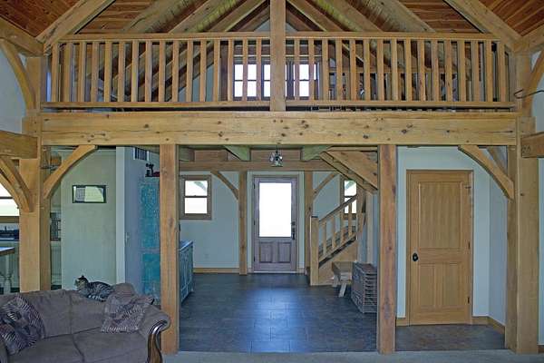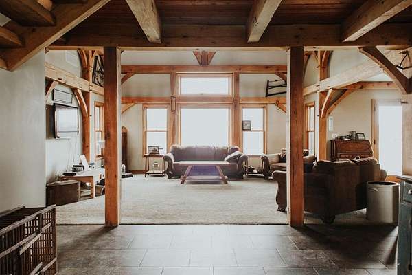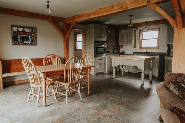 Comp Purposes Only-Predetermined Buyer Fall in love with this custom Amish built Post & Beam Timber Framed home with exquisite quality and craftsmanship with stunning woodwork. Brick and cedar exterior, Dramatic vaulted ceilings, massive timbers, gracefully curved braces, exposed wood peg joinery, and handcrafted trim and doors are just a few features that bring out the warmth of the rustic life. This piece of heaven on earth has three bedrooms, two full bathrooms, main floor primary bedroom, two additional bedrooms on the second floor with a loft overlooking the living room. There is an additional finished 434 finished heated living square feet in the bonus room above the two car garage. All of the cabinetry are custom built. The full basement is ready to be finished and has been plumbed for a future bathroom and has a egress window. This beauty sits on a 2.27 acre parcel with ample room to roam.