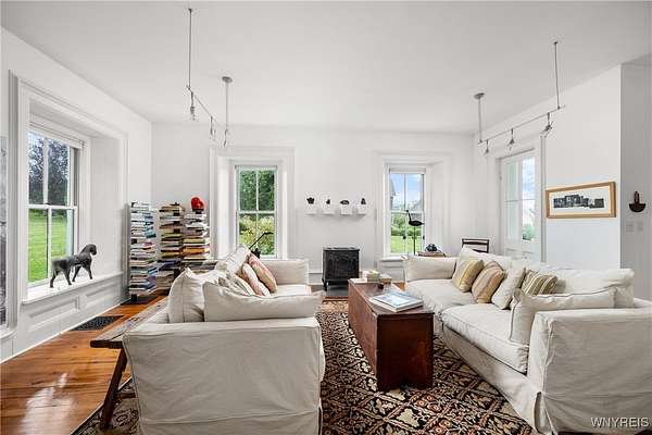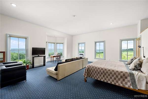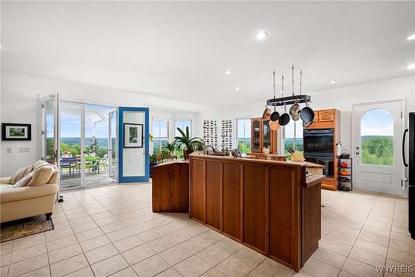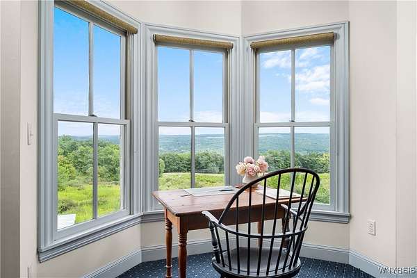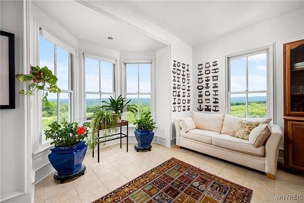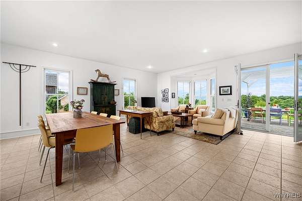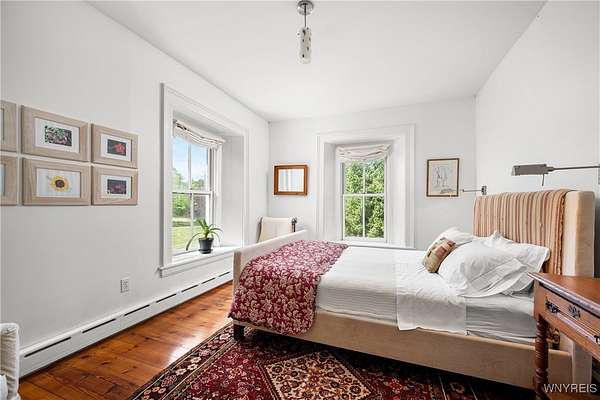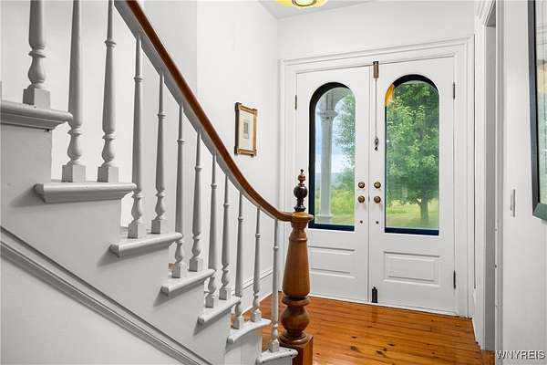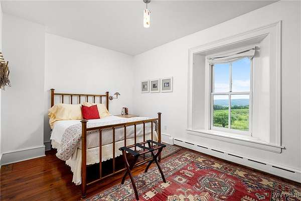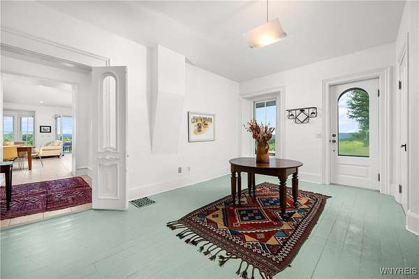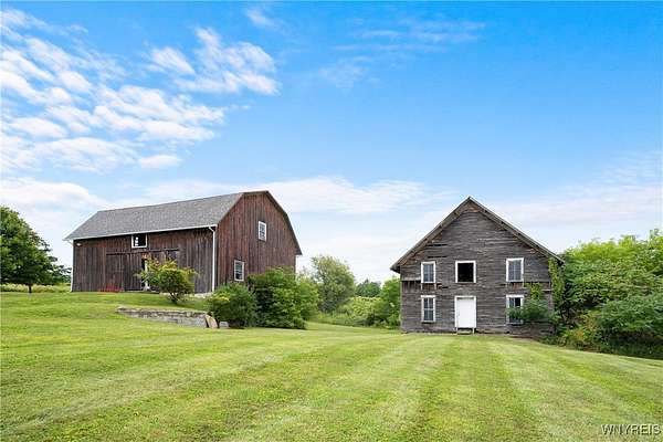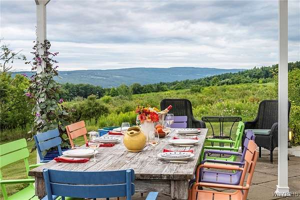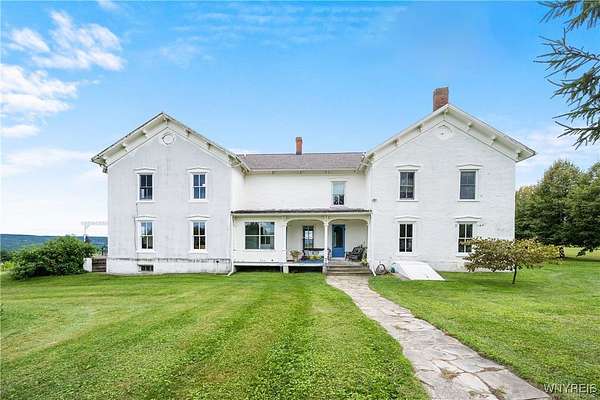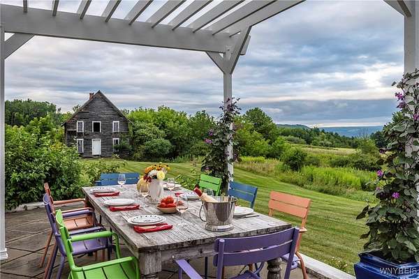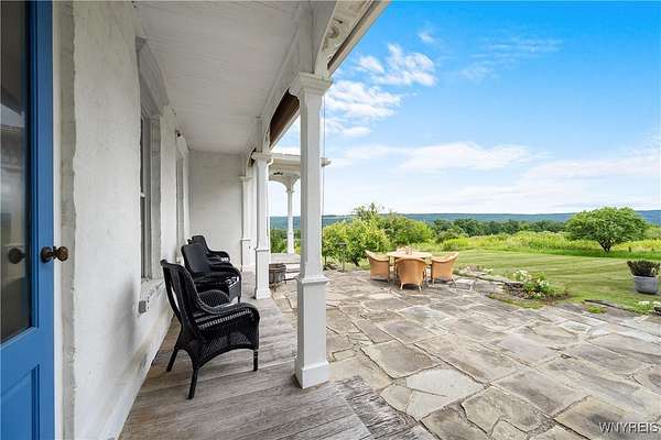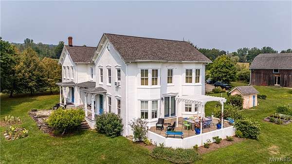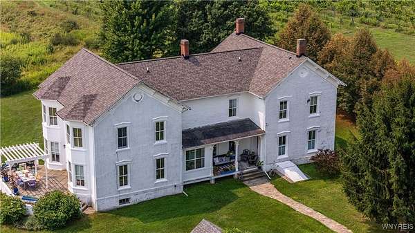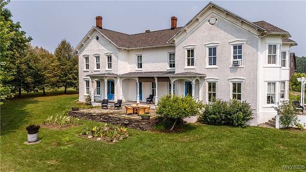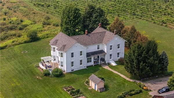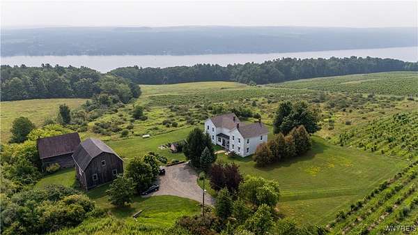 Stunning! Hirondelle Farm sits on 13+ spectacular acres overlooking Keuka Lake and features an 8 acre vineyard, a historic barn, gardens and beautiful naturalized fields. Exterior maintenance and updates are nearly complete including roof replacement, window & trim paint and terrace and walkway stone work. The vineyard features Bacco Noir grapes used in several local wines. This historically significant home is a wonderful example of Greek Revival architecture featuring a double parlor, large foyer and internal stairway and maintains much of its originality. The home was built in the 1860's for JD Masson, Master Vintner of Great Western Champagne & Pleasant Valley Wines. Most of the original home remains in tact, however it was meticulously modernized and expanded (2000's) to over 4700 s/f featuring 10' clgs; 5 bedrms, 2.5 bath. The modernization included insulating all of the exterior walls, replacing windows with historically correct efficient units as well as adding nearly 2000 s/f of living spaces. The seamless addition mimics the original home and features an open first floor kitchen/din/great room w/ over 900 s/f of undivided space, 10' ceilings and huge bright windows. Above is the equally impressive primary suite offering stunning views of the Lake, vineyard and naturalized acreage. The beautiful original flooring and finishes are bolstered by updated electric, radiant heat and updated baths. Relax and sip local wines on the 2 covered porches, or entertain on the 2 expansive stone terraces all with spectacular views. The original barn has been converted to an art space, and the original grape packing house, while solid, is awaiting your vision. Entertain guests, host events, or just enjoy your own private vineyard at this beautiful piece of Finger Lake and Viticulture History. Fresh paint, exterior updates and a new roof in 2025.