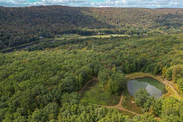 Est $2,342/moDiscover 67 surveyed acres of mostly gentle terrain in the scenic Town of Hancock, NY! The property features nearly 1,800 feet of frontage on the Upper Delaware River (railroad crossing required for access), plus a pond just under an acre in size. Two long, deeded rights-of-way provide convenient access to the land. The wide open area near the pond is perfect for an off-grid cabin, solar-powered home, or a private campsite. With abundant mature hardwoods, including many oak trees, the property also offers potential future timber value. Whether you're looking for a recreational getaway, hunting retreat, or a unique riverfront investment, this tract provides endless opportunities in a truly serene setting.