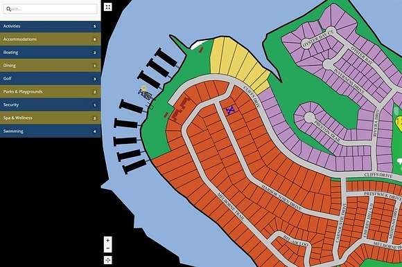 Enter main gate from Hwy 16. Continue on Cliffs Drive for approx 1.3 miles, take a left onto Carnoustie Dr. In approximately 400ft take a right onto Harbour Town Dr. Go down till just before the road dead ends, the lot is on the right 2nd from the end.