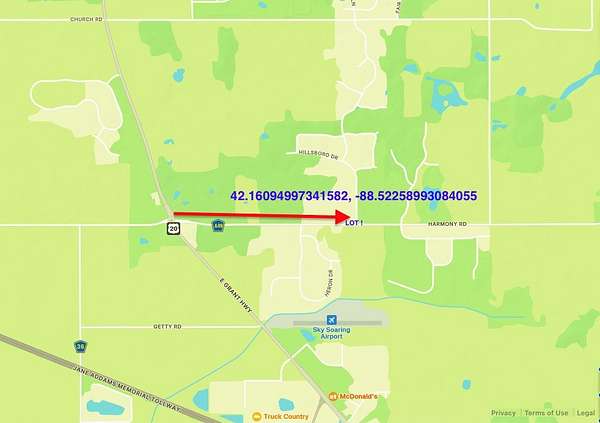 This expansive 10-acre parcel in Lot 1, Harmony, offers the perfect blend of space, privacy, and accessibility. Located near major roads and local amenities, this property is ideal for those looking to build a private estate, or a small farm. Developers and investors will appreciate the exceptional potential for redevelopment. Barn not included. School districts- Square Barn Elementary & Heineman Middle School. Location Coordinates for Lot 1 Harmony Rd Huntley IL: Approx. 42.1681 N, 88.4281 W. A rare opportunity to create something truly special. Contact the county for zoning details and explore the possibilities today!