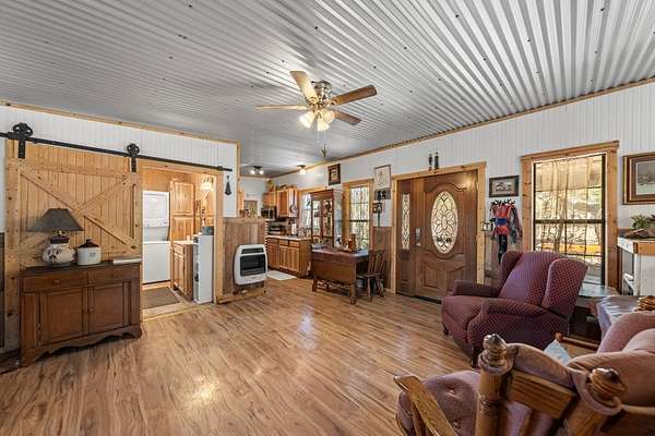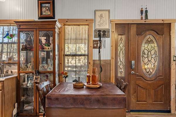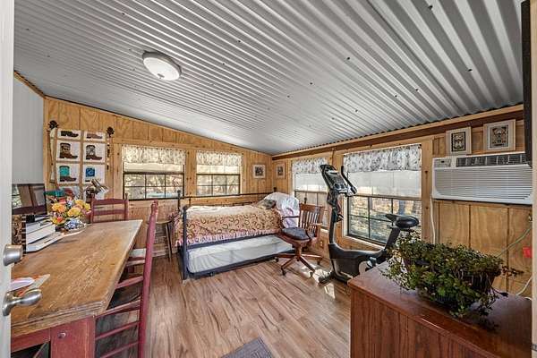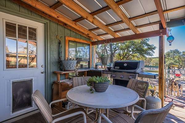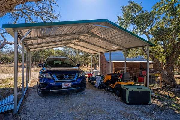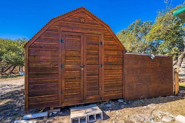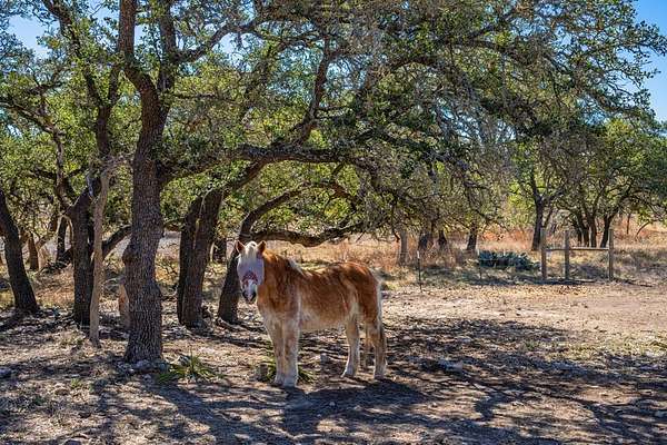 Located in Harper Estates, limited to just 12 lots & surrounded by ranches, this serene country retreat is only 30 minutes from Fredericksburg and Kerrville. The charming cottage, designed by the Seller and built by a master craftsman, features a rustic western design with metal roof, hardiboard cement siding, tin ceiling, Hickory cabinets, & a functional studio layout complete w/a full bath & kitchen. Ideal for animal lovers, the property includes a well-built horse barn, pasture fencing, and a fenced dog yard. A 300' well provides access to the Edwards Aquifer, ensuring a reliable water source. Additional amenities include an RV electric hookup, a 16x10 storage shed w/a loft & carport, & a seasonal creek along the back boundary. The natural landscape is adorned w/beautiful live oaks & Pinn oaks, w/no cedar trees currently on the property. Livestock is permitted, incl chickens (household use), swine (4H only), goats, sheep, horses, and cattle, with limits based on acreage. Seller offering $1500 allowance for a closet to be built.