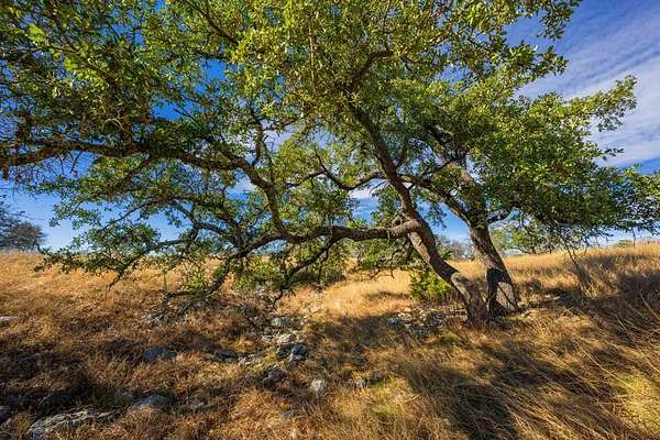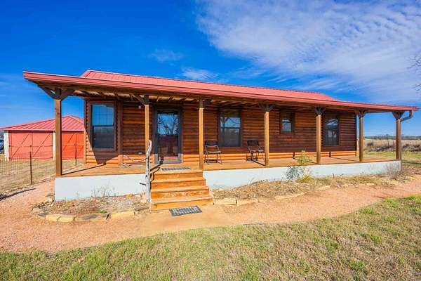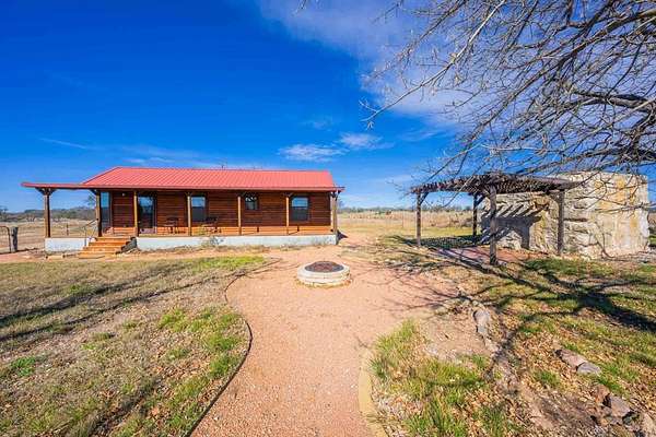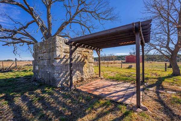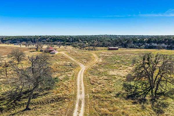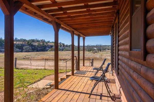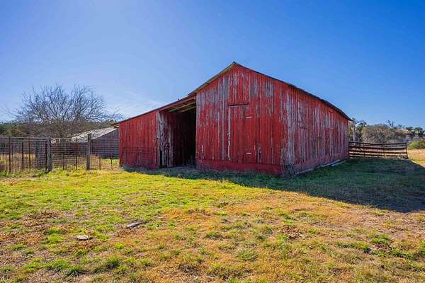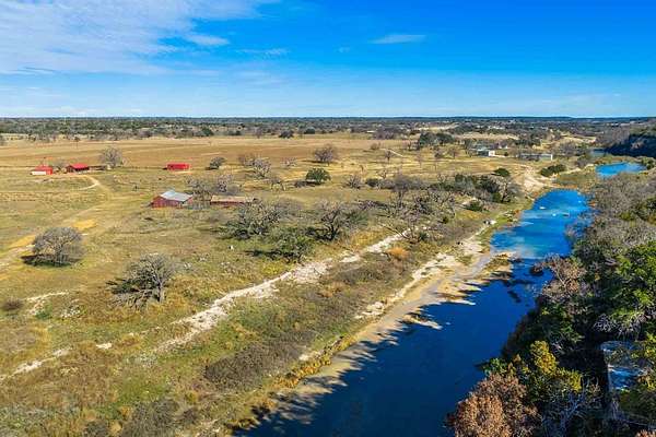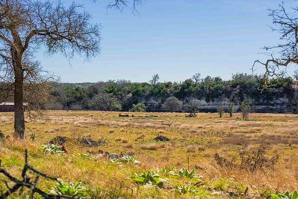 A rare Hill Country offering where thoughtful improvements meet exceptional natural beauty, ideal for a full-time residence, weekend retreat, or recreational getaway. Approximately 440' of frontage on both sides of the Pedernales River, including a shallow rock-bottom stretch beneath a dramatic limestone bluff, creating a scenic live-water setting that attracts abundant native wildlife and offers both aesthetic and recreational appeal. Gently rolling terrain with approximately 19 acres of productive hay fields and native pasture that has benefited from selective cedar clearing, allowing native grasses and hardwoods such as live oak, post oak, pecan, and cedar elm to thrive. A hardwood-lined draw with striking rock outcroppings funnels toward the river, while an elevated area dotted with mature cedar elms offers a prime homesite with views of the river and bluff. Elevation ranges from approximately 1,900' to 1,960' asl. Improvements include a charming 637 sf Ulrich cabin with 2 bedrooms, 1 bath, loft, covered porch, and stainless steel kitchen appliances. Additional features include a 525 sf metal barn, 550 sf detached stone garage. One water well. Wildlife Exemption