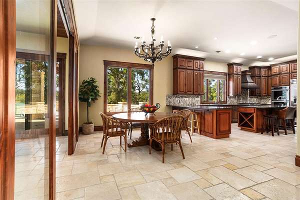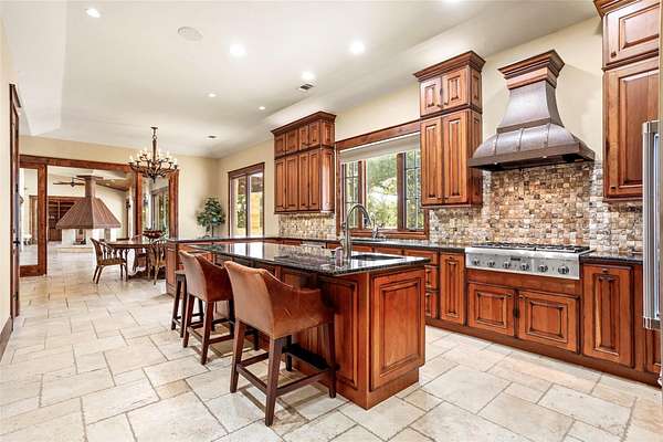 - Bar, Beamed Ceilings, Built-In Features, Chandelier, Eat-In Kitchen, High Speed Internet, Kitchen Island, Multiple Dining Areas, Multiple Living Areas, Natural Woodwork, Open Floorplan, Pantry, Primary Bedroom On Main, Soaking Tub, Walk-In Closet(s), Wet Bar