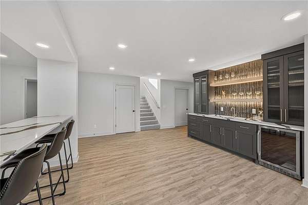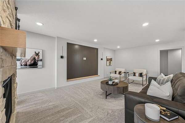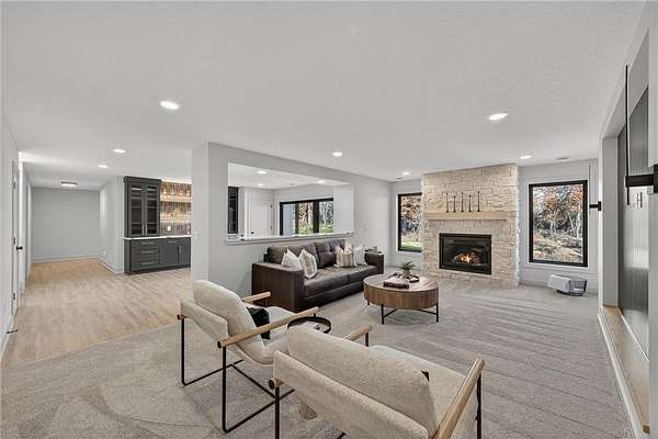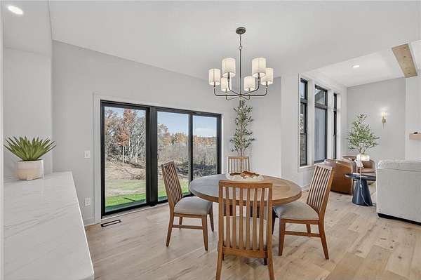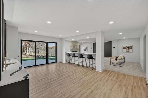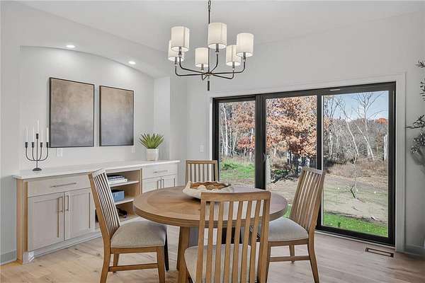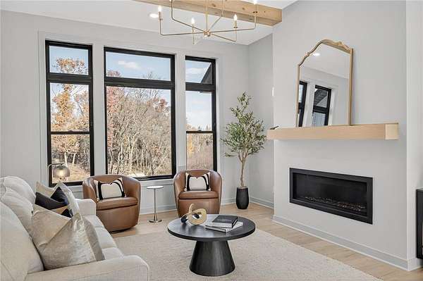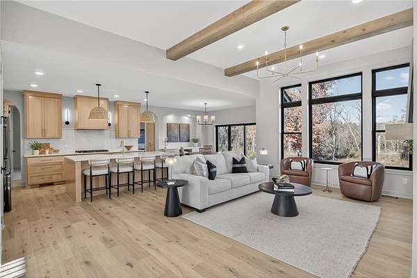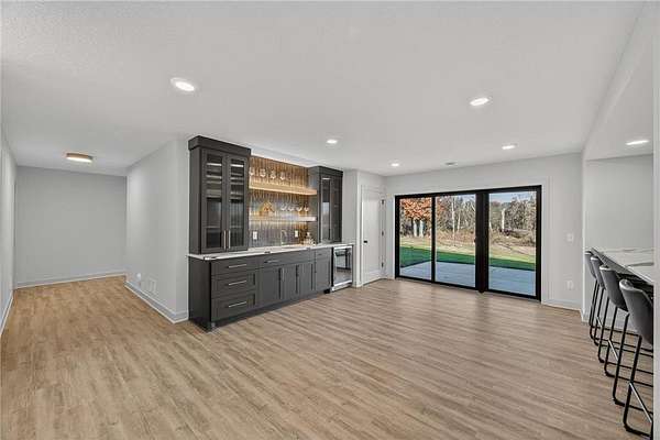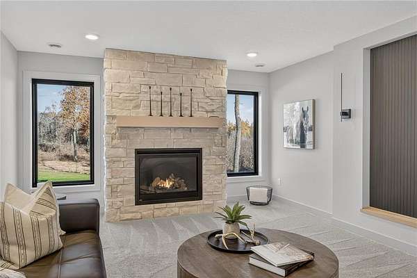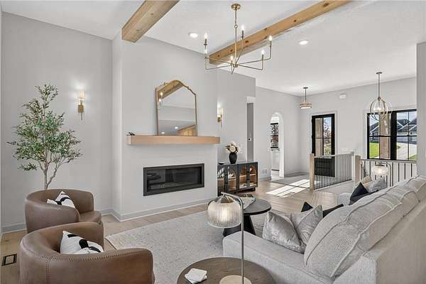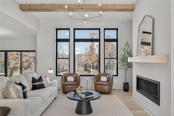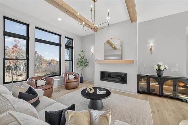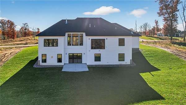 Gorgeous Custom Rambler by Sharper Homes. You Will Appreciate the Modern organic Peaceful Presence of our Newest Model. Beautifully handcrafted inside & out. James Hardi Siding, an inviting Front Porch & 6 car garage. Soaring 11 Foot Ceilings, Open design, Custom Beams. Fireplace, Oak Cabinetry, Quartz Top, Wood Flooring, Buffet- 3 pane sliding glass Doors with an Amazing Split Bedroom plan. Owners Suite features stunning Tile Flooring Walk-In Shower & Free Standing Bowl, Tub. This Bath Adjoins Huge Walk in Closet to Laundry. The Lower Level is also Finished. Game Room, Wet Bar, Family Room with Full Stone Gas Fireplace, Media Wall & Exercise Room Too! Plus 2 Additional Bedrooms & Full Bath that Walks Out to Patio & Private Wooded Backyard On Quiet Cul de sac. And 14.1 Acres. This Lot Allows For An Outbuilding of 5000 SQ FT MAX.