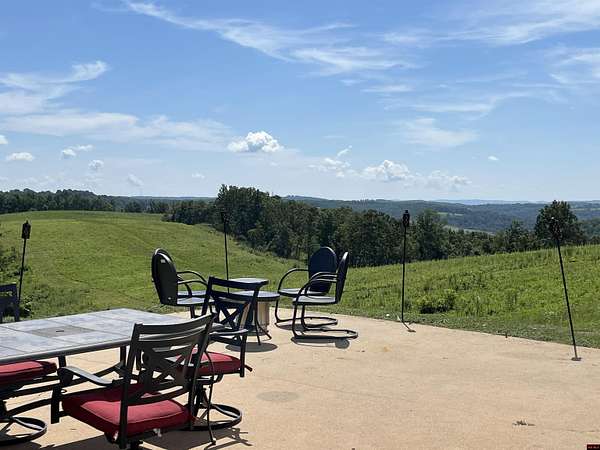 WELCOME to the panoramic views, along with the amazing sunrises and stunning sunsets on this 124-acre m/l estate featuring a spacious 5-bedroom home and office. The kitchen, dining, and living room open floor plan provides generous space for family gatherings. There is a spacious bathroom with double vanity, soaker tub, and walk in shower. The large laundry room has a tankless water heater, water softener as well as a shower. The entire home has concrete flooring with the principal areas, living, dining, kitchen having stamped concrete. The 2000 sq ft., 3 bay detached garage offers plenty of space for storage and outdoor equipment. The extended patio is perfect for morning coffee, evening barbecues, or simply soaking in the amazing views and abundant wildlife. The wildlife, deer, turkey, bear, and hog, including numerous small game, make the property a hunter’s dream come true! Do not miss this opportunity to own a slice of country paradise, schedule your private showing today!!