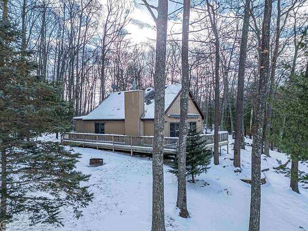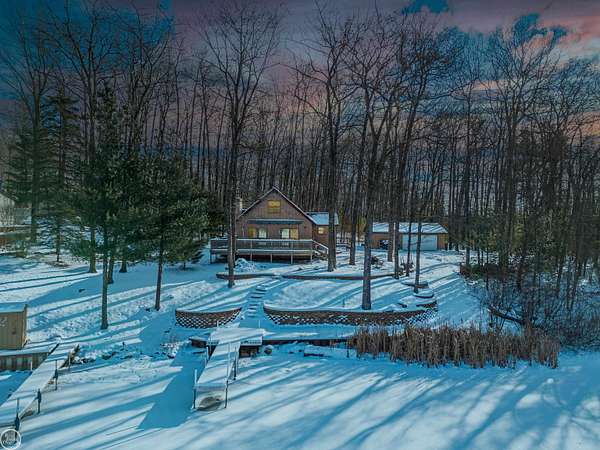 Experience true up-north lakefront living on all sports Cranberry Lake beautifully situated on 3 private wooded acres. Offering one of the best views on the lake, this property features an expansive deck overlooking water fall feature, wooded yard, and direct access to year-round recreation--boating, fishing, kayaking, snowmobiling, and more. Home features open layout with 3 bed, 3 baths, new carpet and fresh paint creating a bright and welcoming atmosphere. A large detached garage provides ample storage for lake toys, tools, and outdoor equipment and full cement driveway. Conveniently located just minutes from Wilson State Park, downtown Harrison shops and dining, golf courses, snowmobile trails, multiple surrounding lakes, and Clare County recreation areas--ideal for those who want a true up-north lifestyle with modern comforts. Whether you're searching for a full-time home or a seasonal retreat, this property offers comfort, privacy, and one of the best lakefront settings in the area.