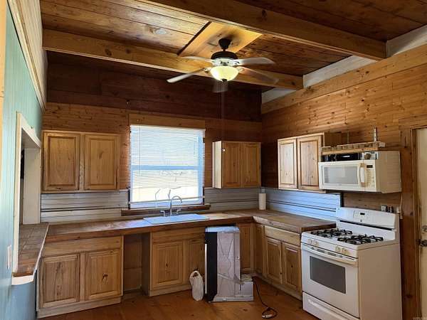 Charming Victorian fixer-upper overlooking the Arkansas River Valley, located on just over 2 acres with a 16x40 frame building and a detached shop/single-car garage, + mobile home w/ little to no value given; partial updates include newer wood flooring, updated windows, insulation, and an updated bathroom, while original moldings, a formal dining room, large laundry, and a cozy country kitchen with wood accents, breakfast bar, refrigerator, and gas range retain the home's character; additional unfinished upstairs space offers room for expansion, and the property includes two septic systems with full utility hookups at the frame building/mobile home site, a survey divided into two tracts, and is priced accordingly for the handyman or investor ready to make it their own.