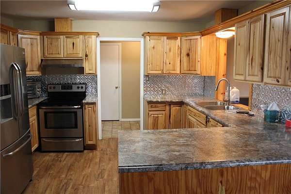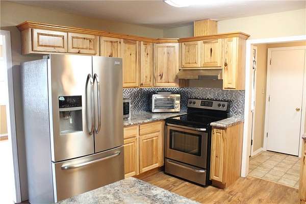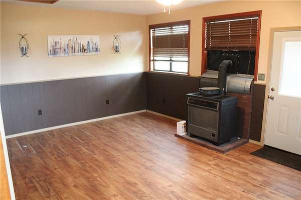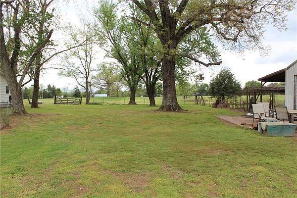 The property features well-maintained, fenced, and cross-fenced pastures. A cattle working lot is present and could be readily returned to use with some clearing. Amenities include a concrete waterer supplied by an existing well. Two ponds, stocked with fish, are located in the south paddock. A grazing lease is currently in place on the pasture, which is subject to termination or continuation by the new owner. The residence is a well-maintained four-bedroom, two-bathroom home. It features a spacious living room and den area, with a combination of hardwood and vinyl laminate flooring. The entire interior has been recently repainted and is prepared for immediate occupancy. The exterior is finished with steel siding and includes a chain-link fenced area on the north side of the home. The yard is neatly kept, with Zoysia grass present in the front of the residence. Also included is a one-car carport attached to the home.