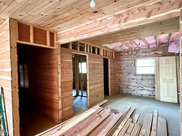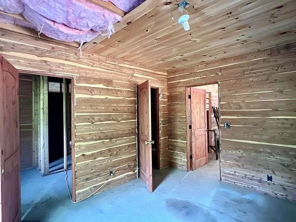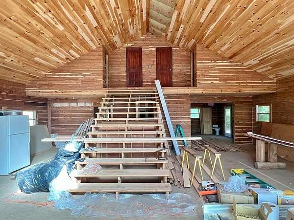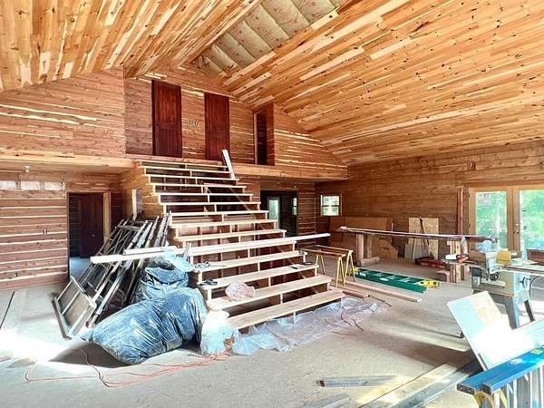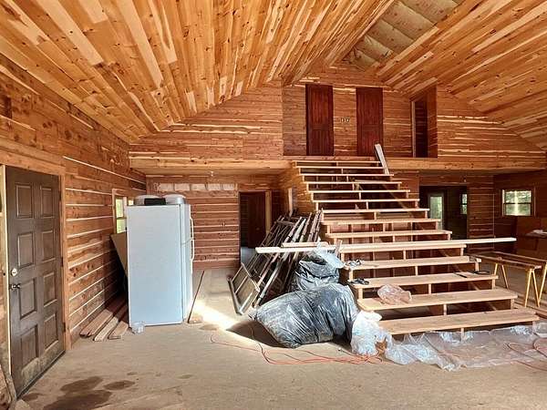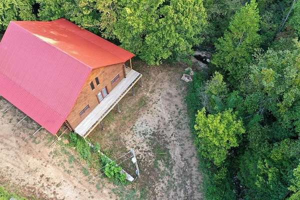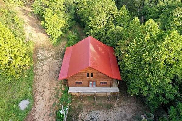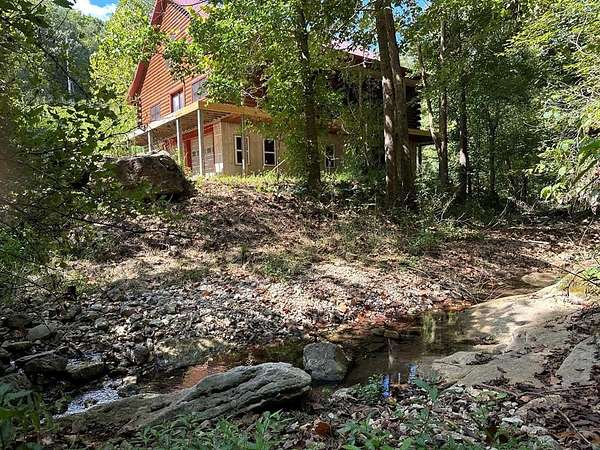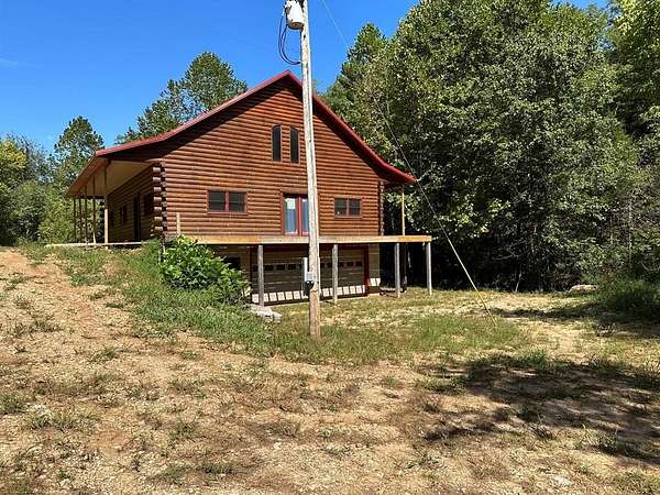 Nestled on 200 acres of pristine wilderness, this luxurious unfinished log lodge promises an escape from the hustle and bustle of city life. The lodge, a masterpiece in progress boasts 4 bedrooms, 3.5 bathrooms, cedar-lined walls, majestic vaulted ceilings, a huge staircase, a wrap-around deck, and a basement with concrete walls and floors. Adding to the property's enhancement is a 30 x 40 Pole barn. Tucked in the rolling hills of the heart of the Ozarks, sits a truly unique opportunity. For the avid hunter, this property is a paradise with abundant wildlife, caves bluffs, and creeks. Investment potential abounds with multiple road frontages, making this property a savvy choice for those seeking to capitalize on its prime location.