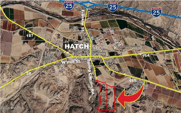 107.82 Acres available in the Chile Capital of the World, Hatch, NM. Property offers endless possibilities with about 30-acres of level terrain and the rest is mountainous. Property has city water and one livestock water well. Natural gas is available at the end of the cul-de-sac and a power line runs through the property.Discover a rare opportunity to own 107.82 acres overlooking the breathtaking Hatch Valley, world-famous for its rich agricultural heritage and iconic chile fields. This remarkable property offers the perfect setting to build your private retreat, custom home, or investment project surrounded by unforgettable New Mexico landscapes. Hatch Valley living at its finest. Whether you're seeking peace and seclusion, wide-open space, or a unique investment opportunity, this property combines natural beauty with practical infrastructure in one exceptional offering. Offering plenty of options as open-pit mining in one of the New Mexico's most iconic landscapes.