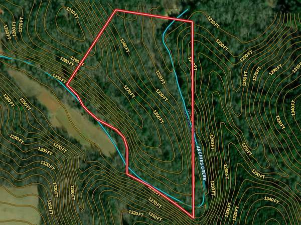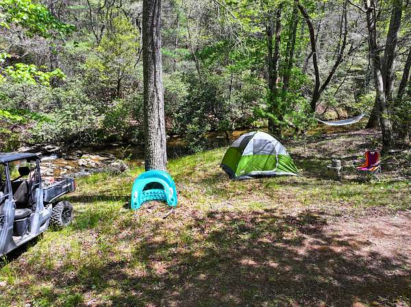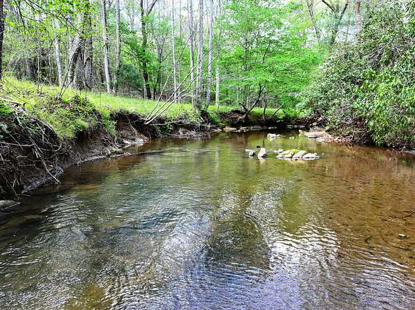 The defining feature of this property is its frontage on Archies Creek, which flows for more than a quarter-mile along the eastern, southern, and western boundaries. The creek winds through the landscape with exposed rock features and a natural sandbar, creating a setting that feels more like a private park than a typical land tract. Whether you envision spending your days relaxing in a chair with your feet in the water, setting up a hammock and swinging along the banks, or building a small fishing retreat, the opportunity along the creek is exceptional. Anglers will appreciate the proven waters, with rainbow trout, brown trout, and smallmouth bass all caught right from the property.