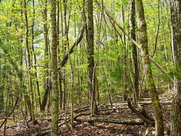 The land itself is entirely wooded, offering the kind of seclusion perfect for both recreational use and future residential opportunities. An elevated ridgetop forms a peninsula-like setting surrounded by the creek, offering the ideal spot for a cabin or full-time residence. From this vantage point, you can enjoy views into the towering hardwoods while listening to the steady flow of water below. The timber mix includes oak, poplar, pine, holly, and rhododendron, contributing to the property’s natural beauty and privacy.