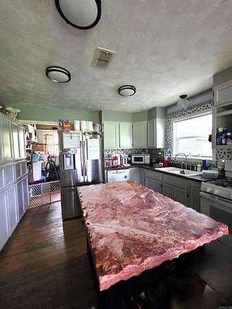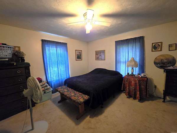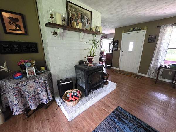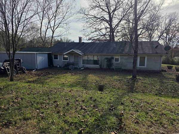 Explore this cozy home situated on nearly 19 acres! There's so much to offer here, including hickory and pecan trees, walnut trees, a pond, a garage with a loft and 220-volt power, as well as a storage shed and a lift. Inside the home, you'll find a kitchen featuring an entire wall of cabinets and a unique granite-topped island. The home is equipped with a gas range, gas central heating, and a beautiful soapstone wood stove. At the back, there's a fully set up office and laundry area. The bay window in the front provides excellent views of the wildlife that roam through the property. A garden area out back with small, wet weather creek. Schedule your appointment while it's still available!