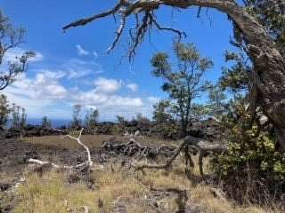 Road to the Sea - Incredible view acreage with a driveway cut in all the way back to a house pad area and with the best ocean views around! At the front of the lot, near the chained entrance, is a second building pad site. This property continues down Road to the Sea about 1/10 of a mile from the driveway and the two front staking pins are visible. This amazing property is well worth the drive down the sometimes rough road, but please only drive down this far with either an AWD or a 4WD vehicle with high clearance. The land starts at about the 1.8 mile point and will be marked with a sign at the front entrance. No conventional power is available, but solar and/or wind power would work well here. Water is by catchment system or delivery. The zoning is A-3, so there may be a possibility of subdividing with county approval. Lava Zone 2, Flood Zone X. Road to the Sea in Kona Gardens Subdivision is a very private and sparsely populated area of the many Ocean View subdivisions with a secluded green sand beach at the bottom of the road (approximately five miles down from the highway). Just up Highway 11 from where Road to the Sea starts at Tiki Mama's, you'll find Ocean View Town Center and Pohue Plaza, with many small businesses. They include restaurants, markets, gas stations, as post office, hardware store and much more. About and hour and a half north is Kailua-Kona which has most major services, big box stores and an international airport.