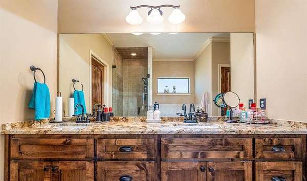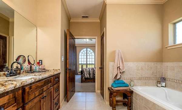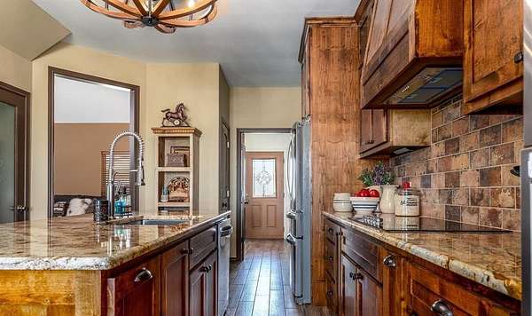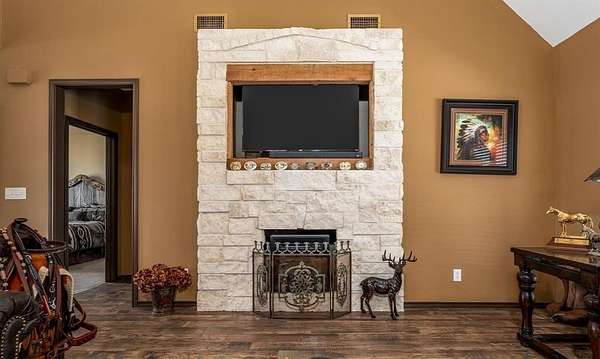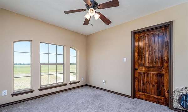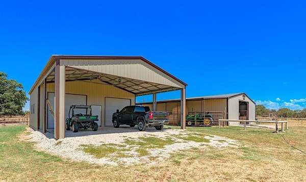 Welcome to your ideal horse property just outside Abilene where thoughtful design meets country comfort. This versatile ranch style retreat blends the best of residential living with equestrian functionality. The two story home offers 4 bedrooms, 3 bathrooms, and 2 dining areas. Inside, soaring cathedral ceilings and a fireplace create a cozy and open main living space. The kitchen includes high end appliances, a granite island, and casual dining with a nearby flexible space ideal as a formal dining room or home office. Upstairs, a spacious bonus room adapts easily to your lifestyle as a bedroom, game room, craft space, or media room. Upgrades provide comfort and peace of mind, including 2 Trane AC condensers and air handlers with UV systems, a whole house air purification system, carpet, paint, and waterproof vinyl flooring in key areas. A smartly designed mudroom triples as a utility and full bathroom for added convenience. Unwind on the back porch beside a standalone rock fireplace, perfect for evening gatherings under Texas skies. A Class 4 impact-resistant copper metal roof adds long-term durability. Outdoors, equestrians will appreciate the 1,800 sq ft barn with 8 custom stalls, roll-up doors, and a wide center alley allowing trailer pull through. A horse walker, 2 round pens, and sandy loam soil support serious training or casual riding. A coastal hay field produces up to 9 round bales per cut, and while the irrigation well is currently inactive, it offers potential with minimal effort. Additional features include a workshop with windows, dual roll-up doors, a walk-through entrance, and space to park two vehicles or a tractor. Whether you're seeking a turnkey equestrian facility or a peaceful country home, this property invites you to live, work, and ride all in one place.