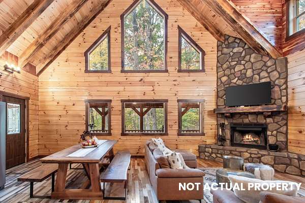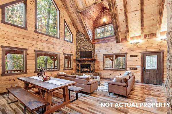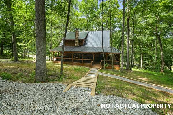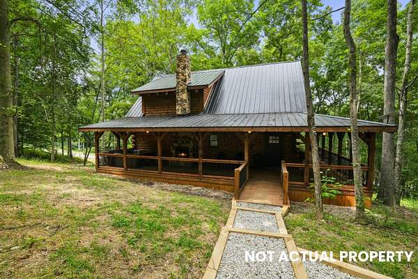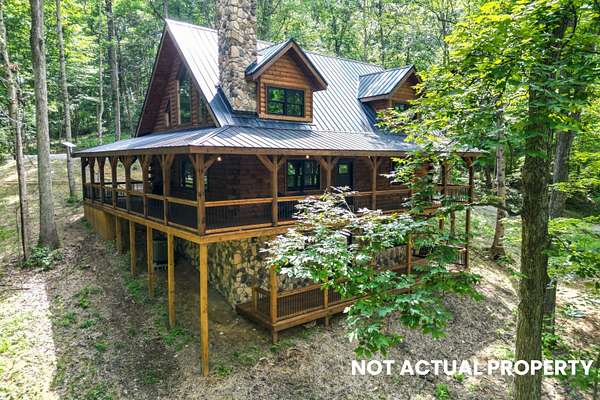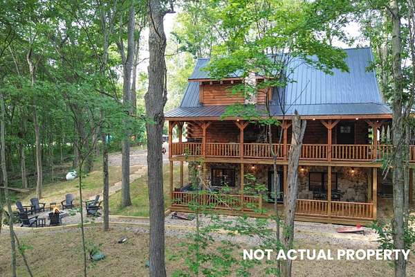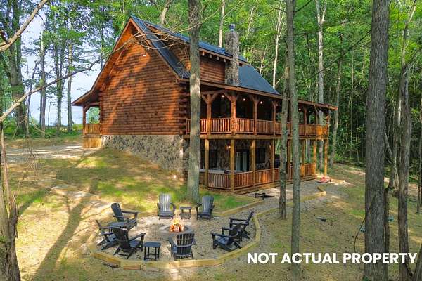 Discover luxury and serenity at The Reserve at Big Pine, a stunning 52-acre development close to all Hocking Hills attractions. Cabin 7 will be built on a cul-de-sac and will be one of The Reserve at Big Pine's most coveted lots with nearly 5 deeply wooded acres. This log cabin home features over 2,450 SF with 3 beds, 3.5 baths (one on each floor), a large loft, a game room, fully-insulated media room, and a wrap-around porch with 12' decks perfect for entertaining. The Great Room boasts soaring ceilings, a stone fireplace, and floor-to-ceiling windows that seamlessly blend indoor and outdoor living. Additional upgrades include a standalone EV charger at the parking pad, electric available at the fire pit site, 6 pane glass exterior doors, and a choice for placement of the hot tub on the upper or lower deck. Buyers may opt to black top or concrete the driveway at market price and at their expense. Ideal as a private retreat or income-producing rental, with space for a second cabin. The cabin can sleep 12. A member of the selling entity is a licensed Ohio Realtor. Photos are of the cabin on lot 2 and the model cabin, representing the design of the cabin to be built on lot 7.