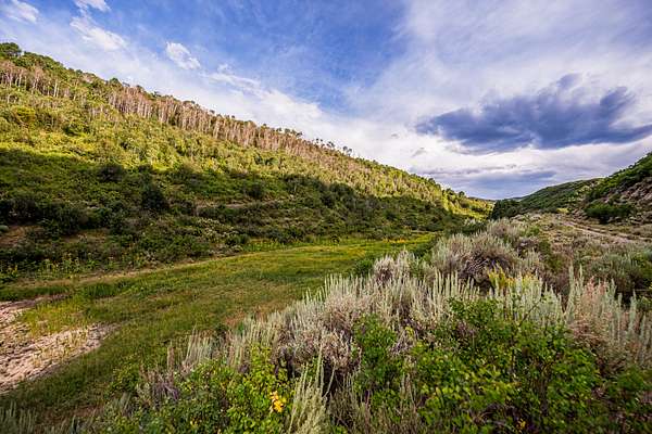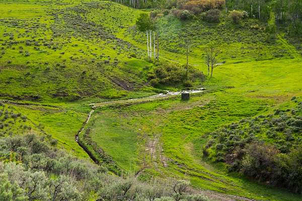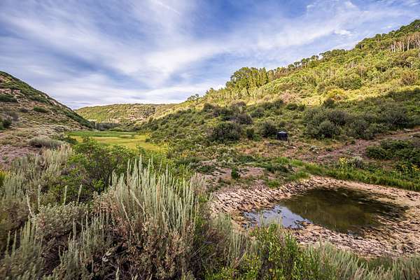 For years I had driven the county roads that pass the Springer Ranch access roads and never in my life would I have ever expected what I would find the first time I arrived into the incredible valley blocked by the ridges from every direction. Comprised of 2,444 +/- deeded acres, the Springer Ranch also includes a 200 +/- acre BLM lease and an approximate 634 +/- acre State grazing lease; 320 acres of which have the grazing and recreational lease for a grand total of 834 +/- acres worth of BLM and State grazing leases. The layout of the land features gradual to steep ridges and well protected valleys that consist of aspens, oak brush and pines with open meadows that ultimately incline into timber slopes with thick pockets. An abundance of springs that feed into numerous ponds with reservoir rights provide an ample water supply for the ranch. As a result of the habitat, vegetation, and water, resident populations of elk and deer can often be spotted at any time while exploring the ranch, and occasionally a moose and/or bear!