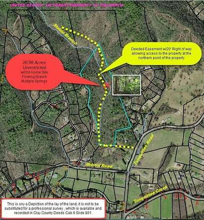 AMAZING OPPORTUNITY - discover 26.98 pristine acres in the coveted Tusquittee Valley--an exceptional mountain property just 5 minutes from downtown Hayesville. Freshly remarked corners and ready for your vision, this unrestricted tract offers privacy, diverse terrain, and multiple potential build sites. Explore lush forests filled with mountain laurel, hardwoods, gentle slopes, ridges, and quiet hollows. With selective clearing or excavation, several premier knolls can reveal long-range, wooded, or ridge-top views. Stable Branch, a clear mountain stream flowing from U.S. Forest Lands, runs through the property, joined by an additional branch and several natural springs--providing an ideal setting for a peaceful retreat. Wildlife is abundant, making it attractive for nature lovers and sportsmen alike. An old homesite with a remaining stone chimney offers a charming historical touch and a potential starting point for a rustic cabin. Unrestricted (with only a simple easement for a neighboring property), this land offers flexibility for a private estate, homestead, or recreational use. Large, untouched tracts like this are increasingly rare in Western North Carolina. BACK ON MARKET AT NO FAULT OF THE PROPERTY OR SELLERS.