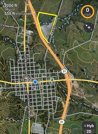 From business Hwy 31 and Hwy 171 (Magnolia) in Hubbard head southeast on go .3 miles turn left onto SE 2nd Street. On SE 2nd go .7 miles. The property is just past the overpass on the left hand side.