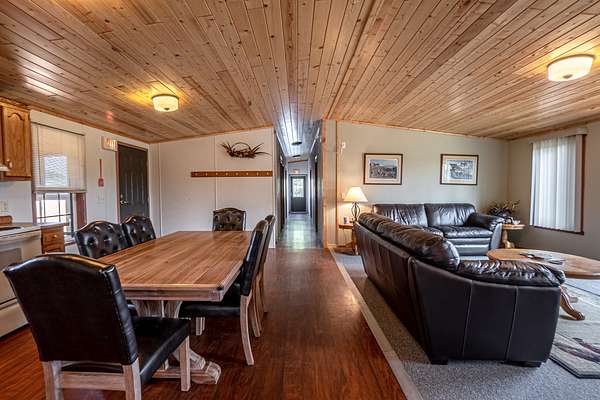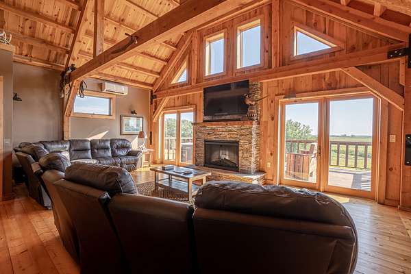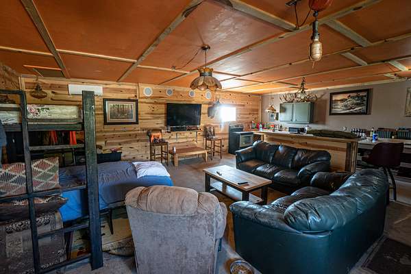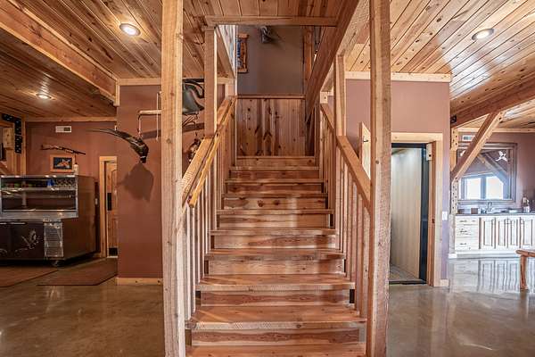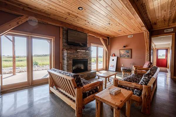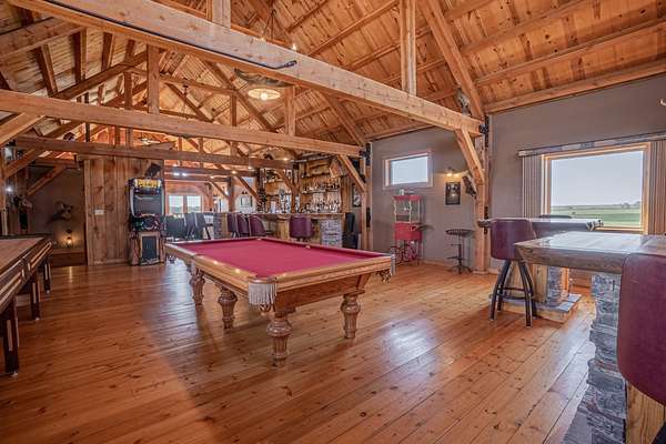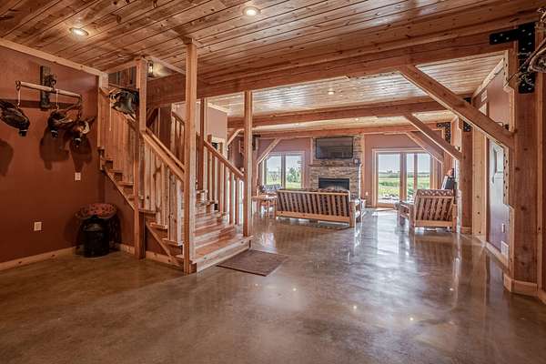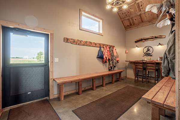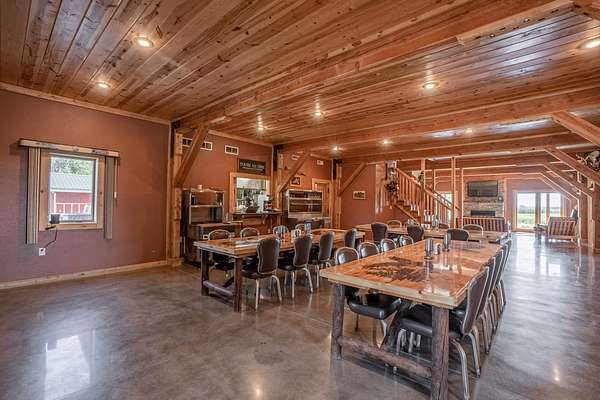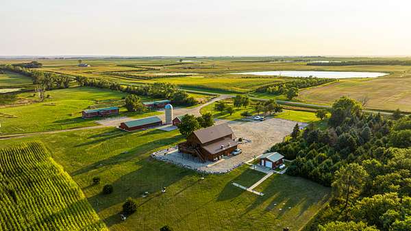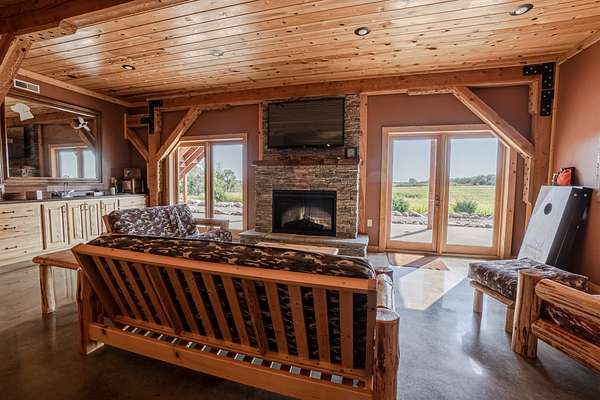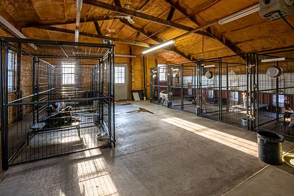 Improvements include a stunning timber-frame lodge with a full commercial-grade kitchen, large bar and entertainment area, and comfortable living spaces designed for hosting groups. Two bunkhouse-style cabins provide additional lodging, while a well-built dog kennel with multiple runs supports serious upland operations. An optional pheasant brooding facility with incubation capabilities for up to 10,000 birds further enhances the property's operational value.