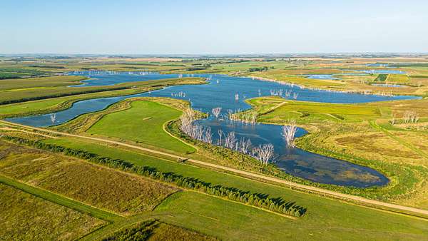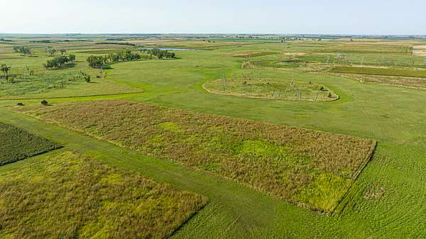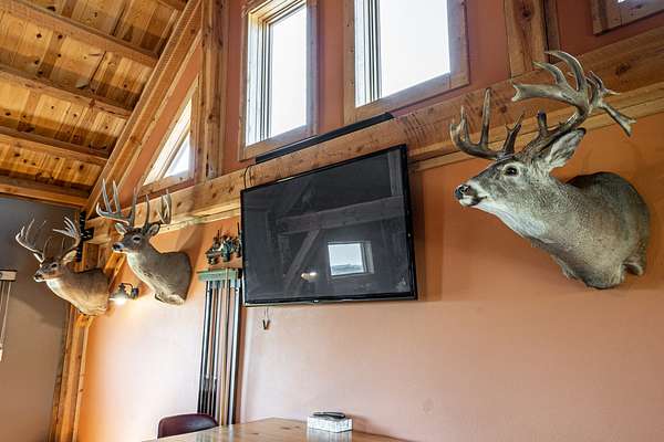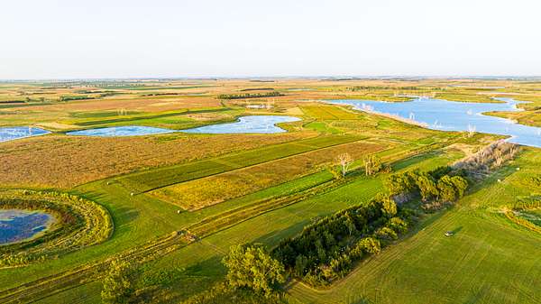 The land features a diverse mix of native grasses, food plots, shelter belts, wetlands, and pothole ponds that consistently attract and hold wildlife. Nearly 600 acres of food plots across the ranch contribute to exceptional whitetail habitat, with Boone and Crockett-caliber deer historically harvested from this area.